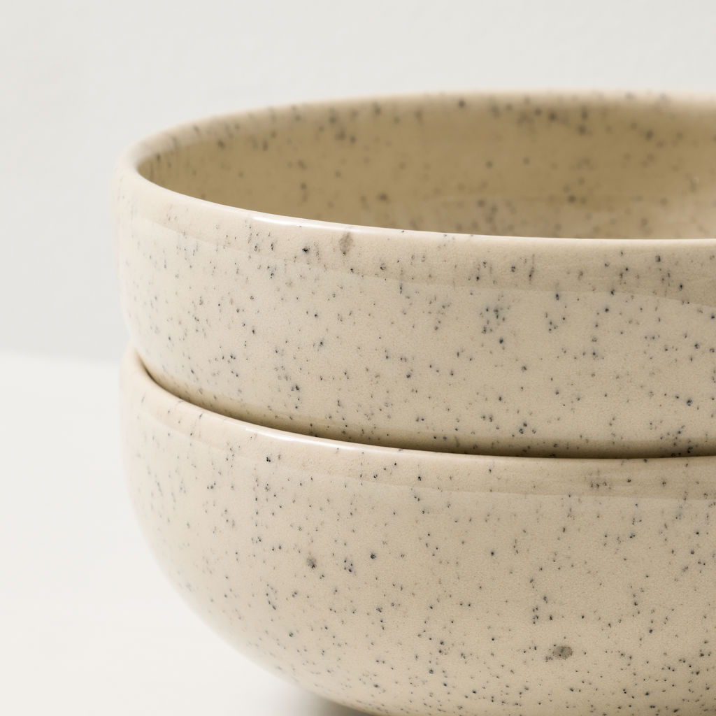 For a modern look, serve a variety of dishes in the Uno Speckle Nature ceramic bowl. Ceramic is a type of tableware made from clay fired at high temperatures until it reaches a glass-like consistency. This creates a highly durable material with the look and quality of stoneware.