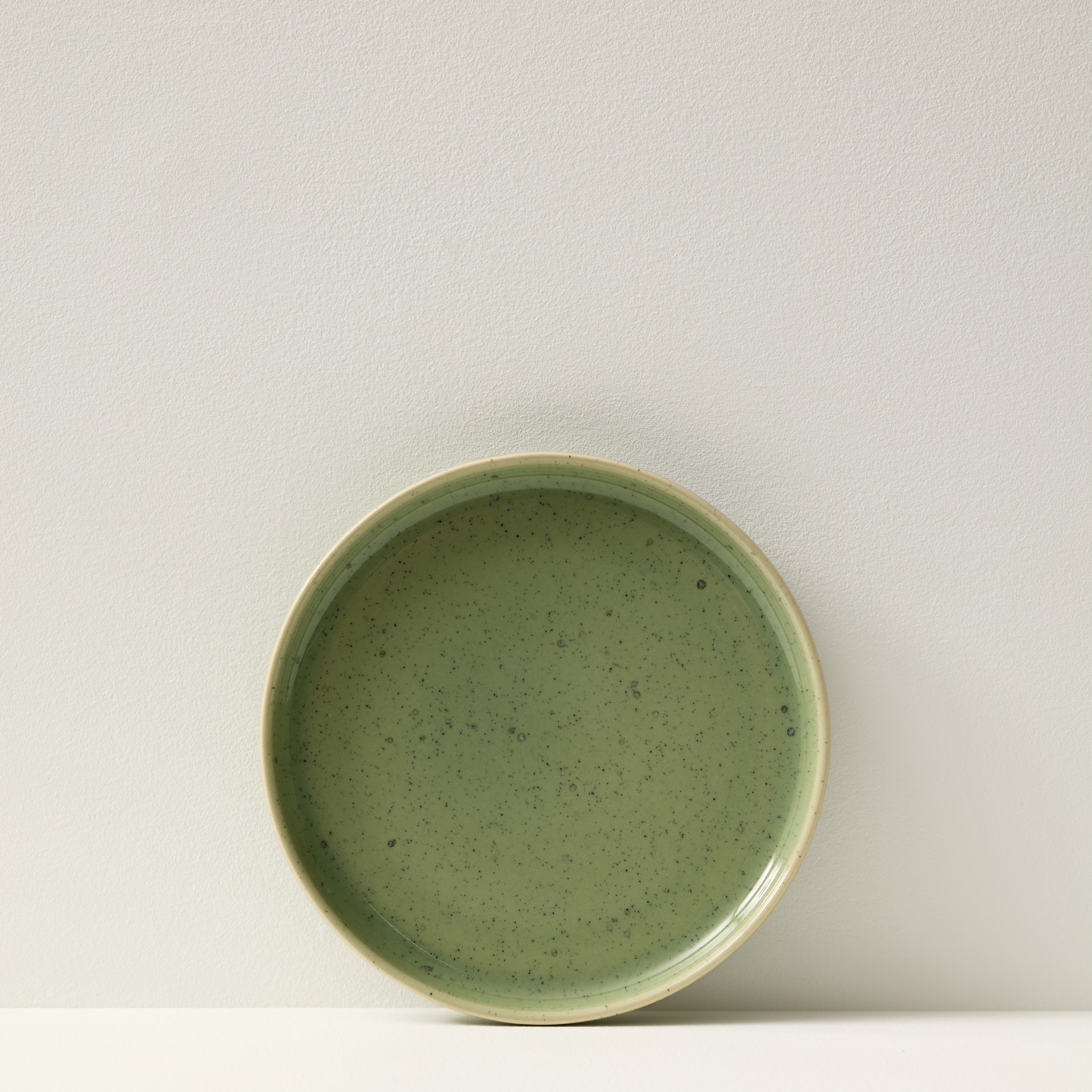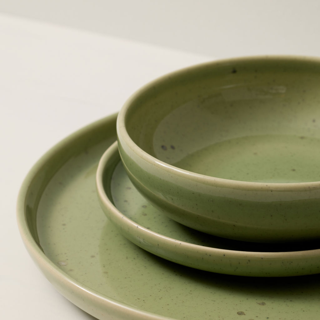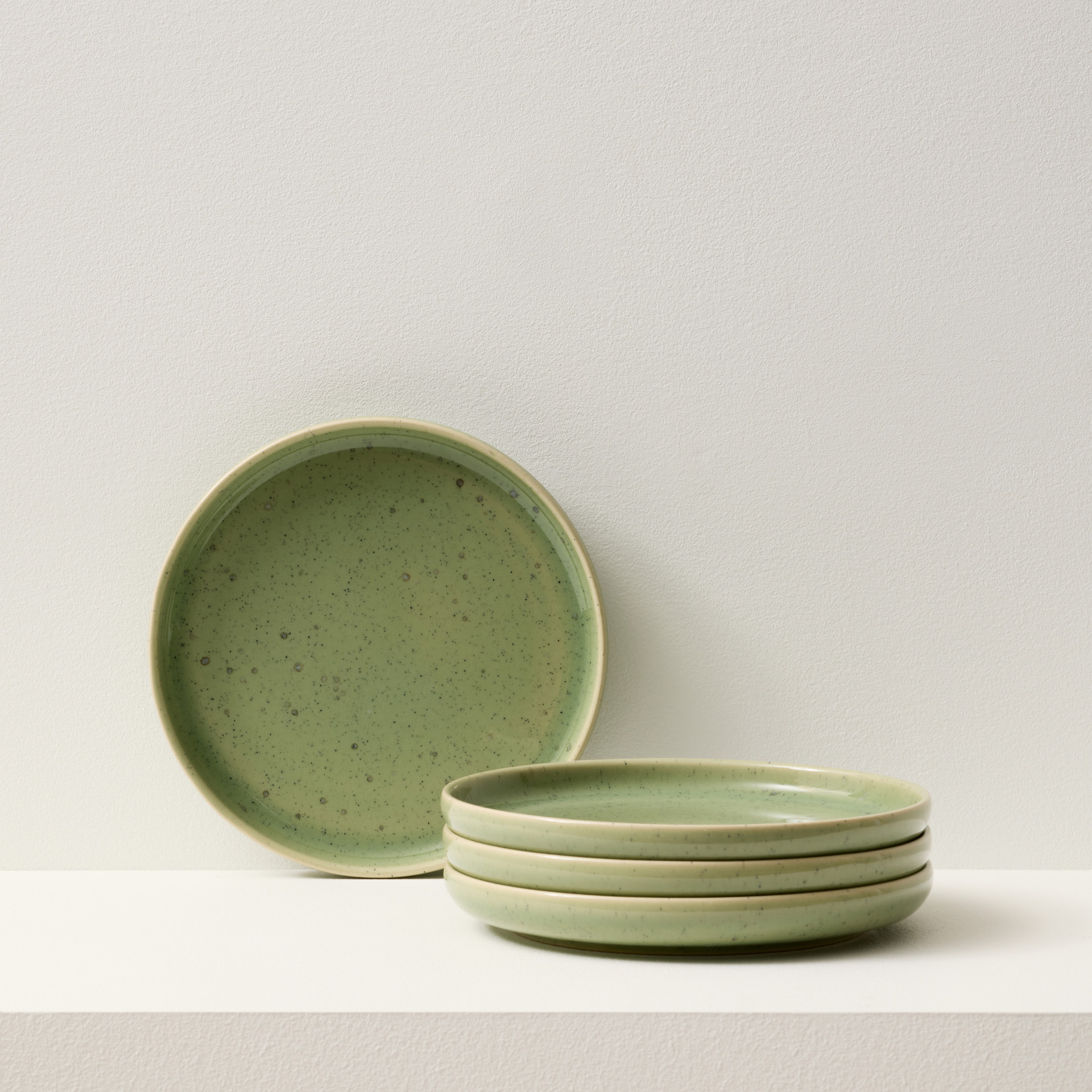 Each plate features a pleasant green tone that fades toward the rim, enhanced by delicate black speckles for added character.