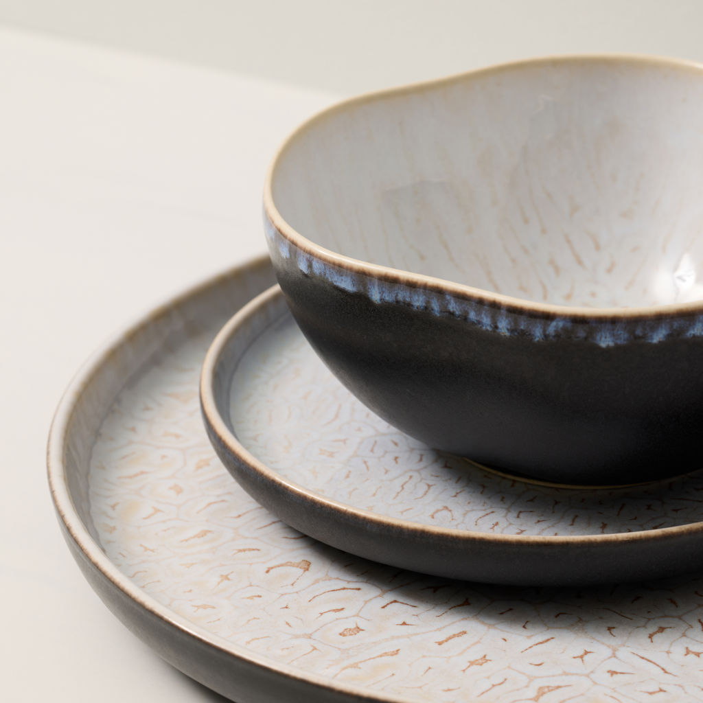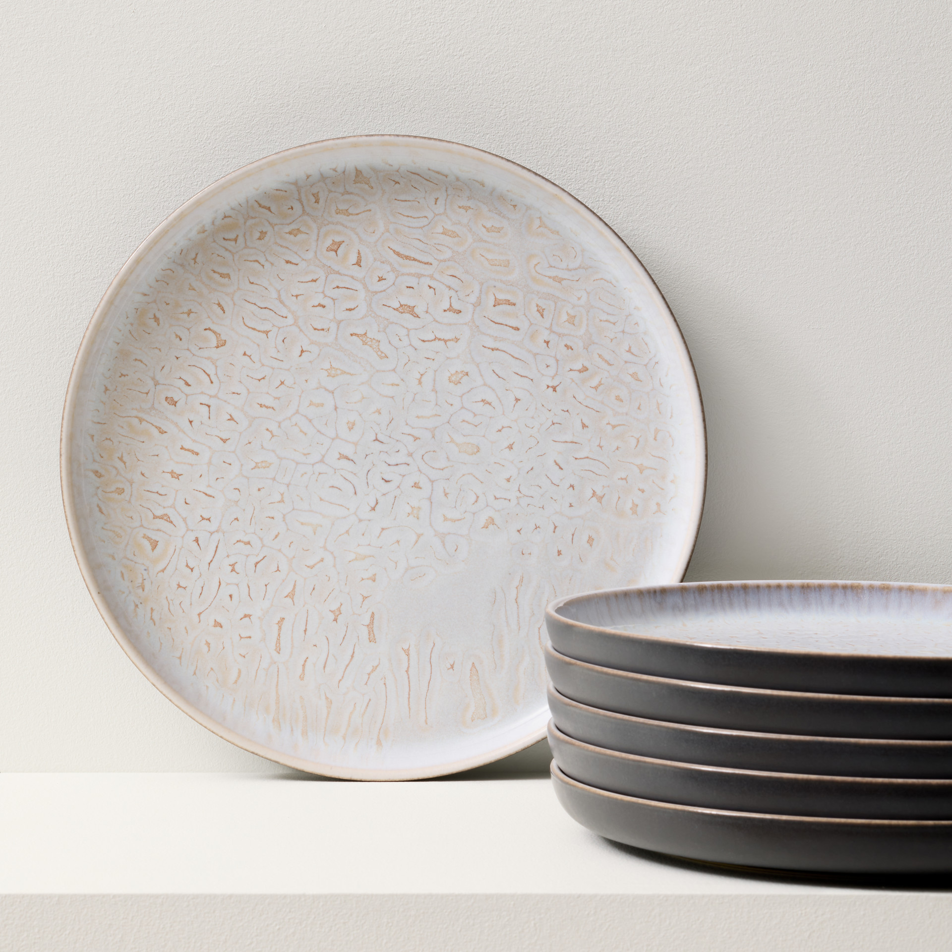 For a modern style, serve a variety of dishes on the Kaze round stoneware plates. Stoneware is a type of dinnerware made from clay fired at high temperatures until it reaches a glass-like consistency. The result is a highly durable material with the look and quality of natural stone.