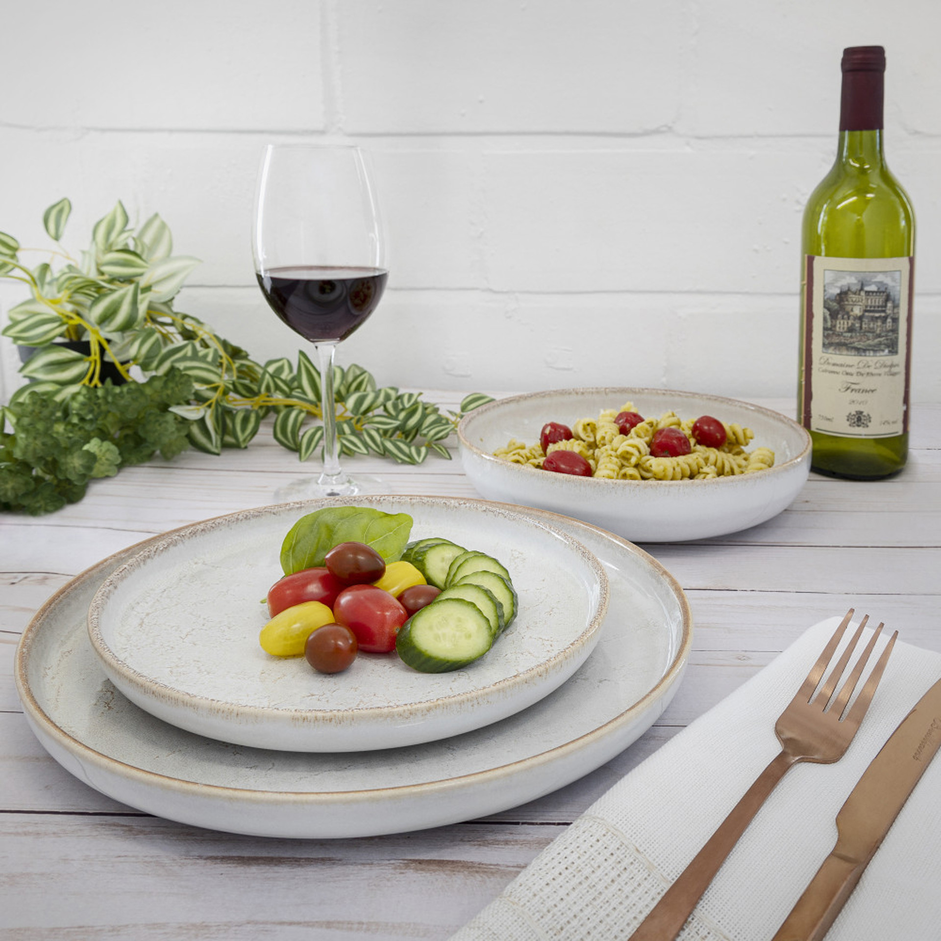 This Uno alabaster ceramic dinnerware pairs beautifully with rustic or café-bistro–style décor. Stoneware is made from clay fired at high temperatures until it reaches a glass-like density, resulting in a stone-like appearance. These bowls are available in multiple colors.