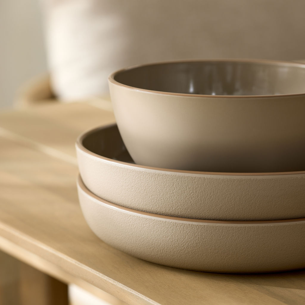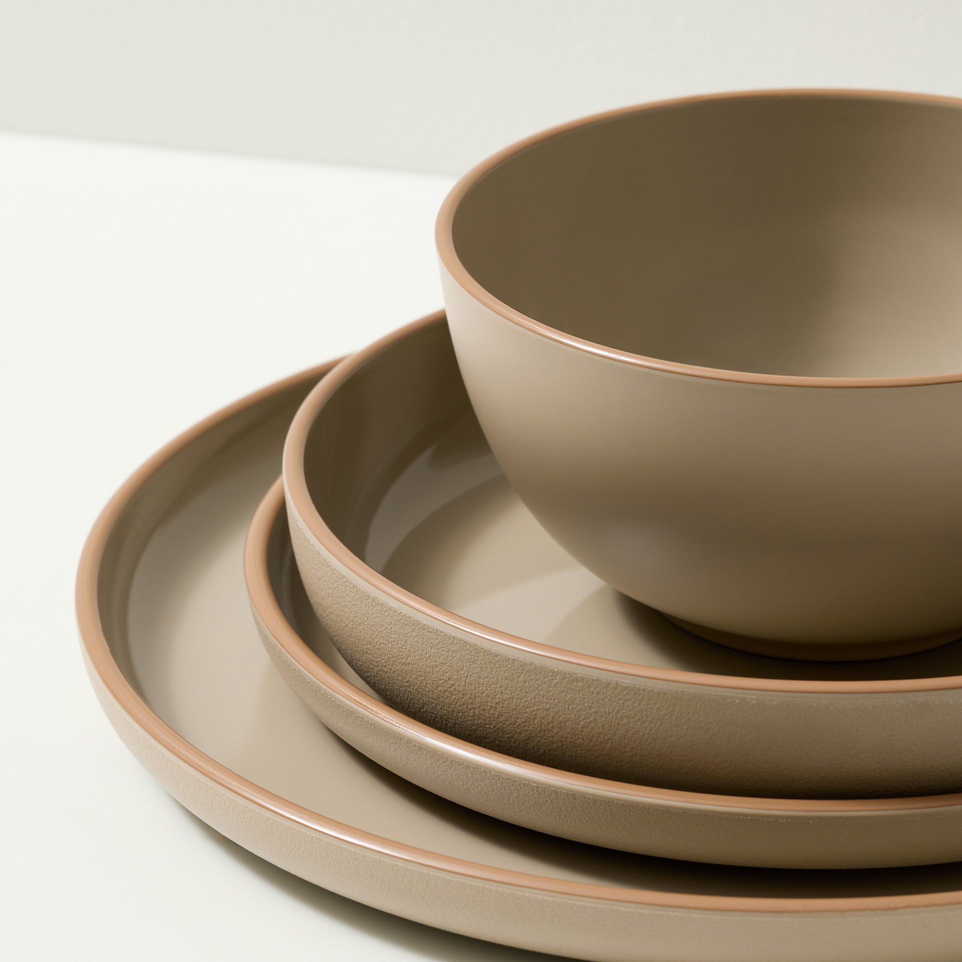 Discover elegant, glossy tableware in soft tones. Add a joyful, modern touch to every meal without worrying about breakage or mishandling, while enjoying the satisfaction of giving plastic a second life and helping reduce waste.