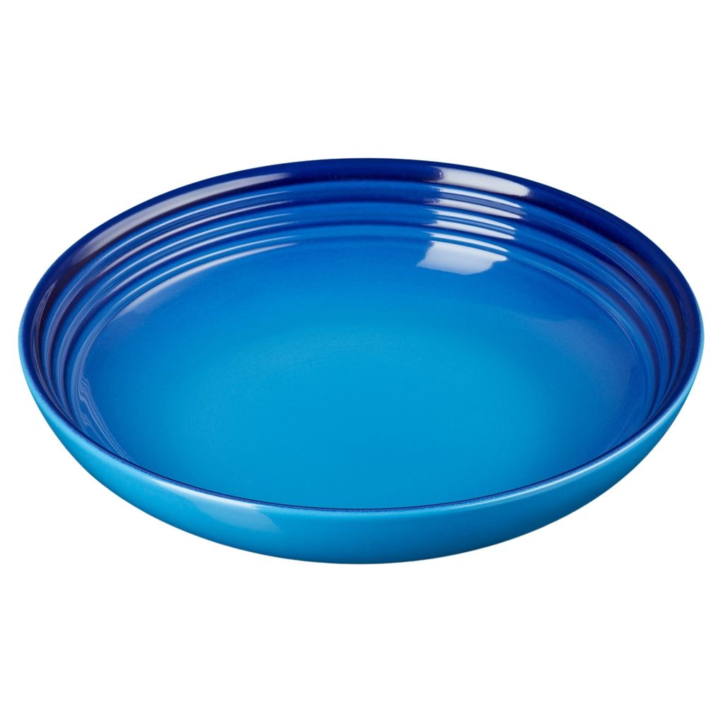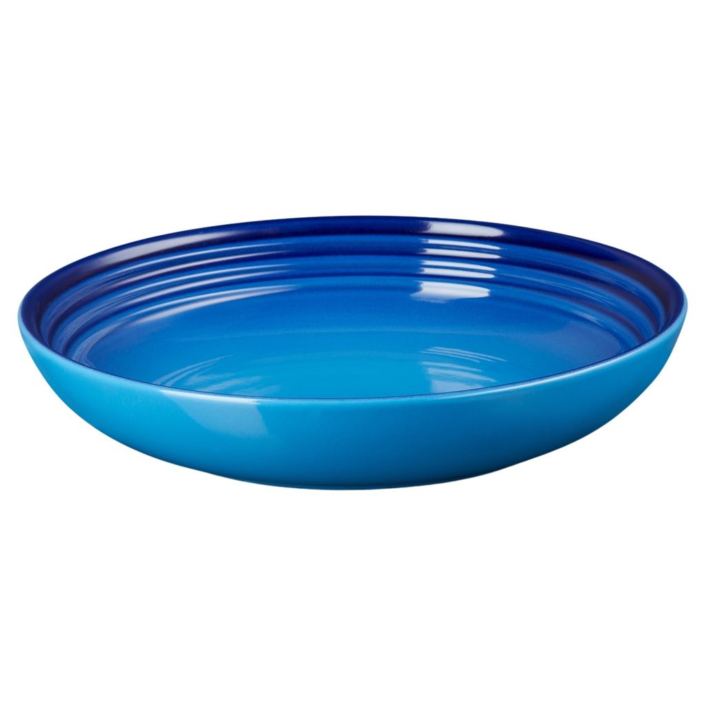 Each piece of Le Creuset dinnerware is crafted in the same careful process as all Le Creuset stoneware - with a colourful, durable exterior enamel that matches other stoneware flawlessly. With a design that is deep enough to contain sauces yet shallow enough for individual service, this Coupe Pasta Bowl features ample space for classic spaghetti, creamy fettuccine alfredo or seafood ravioli. Set atop a Le Creuset dinner plate to complete the place setting.