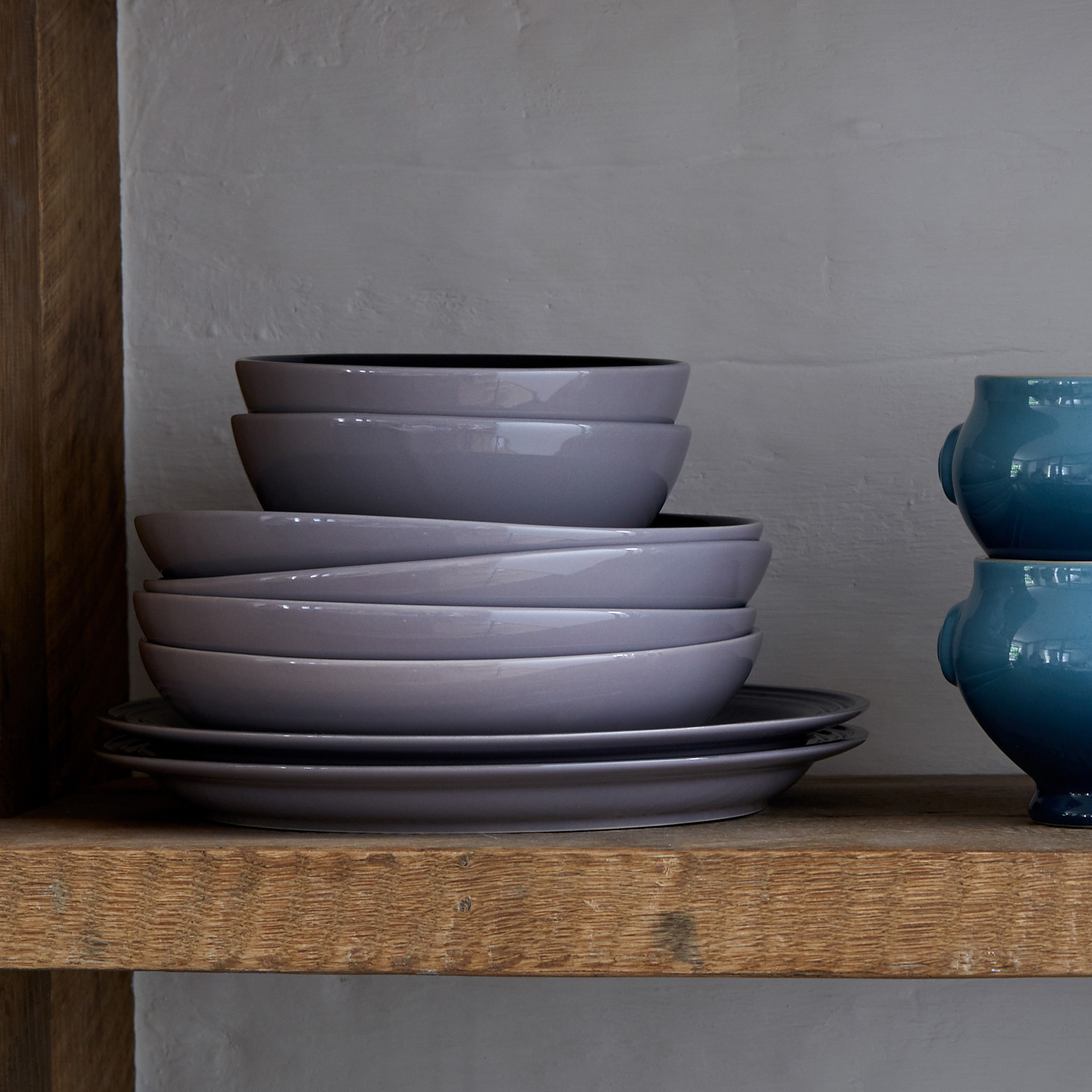Each piece of Le Creuset dinnerware is crafted in the same careful process as all Le Creuset stoneware - with a colourful, durable exterior enamel that matches other stoneware flawlessly. With a design that is deep enough to contain sauces yet shallow enough for individual service, this Coupe Pasta Bowl features ample space for classic spaghetti, creamy fettuccine alfredo or seafood ravioli. Set atop a Le Creuset dinner plate to complete the place setting.