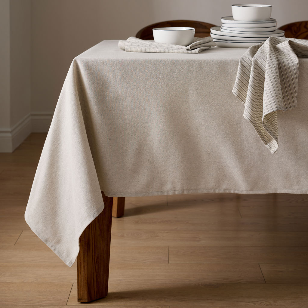 With its 60 × 120 in dimensions, it fits tables that can accommodate up to eight people.