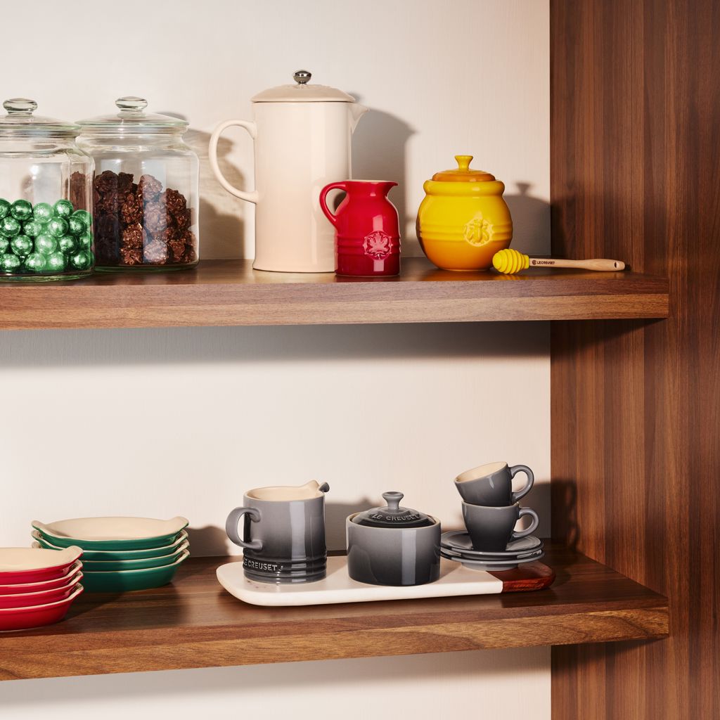 Inspired by the cafés and bistros of Europe, this pair of miniature Espresso Cups and Saucers holds precisely the right portion of your favourite blend. Like every piece of Le Creuset’s Café Collection, each piece is crafted with durable stoneware. Its colourful, durable exterior enamel matches other Le Creuset stoneware flawlessly, ensuring your espresso cups are not out of place on any table setting.