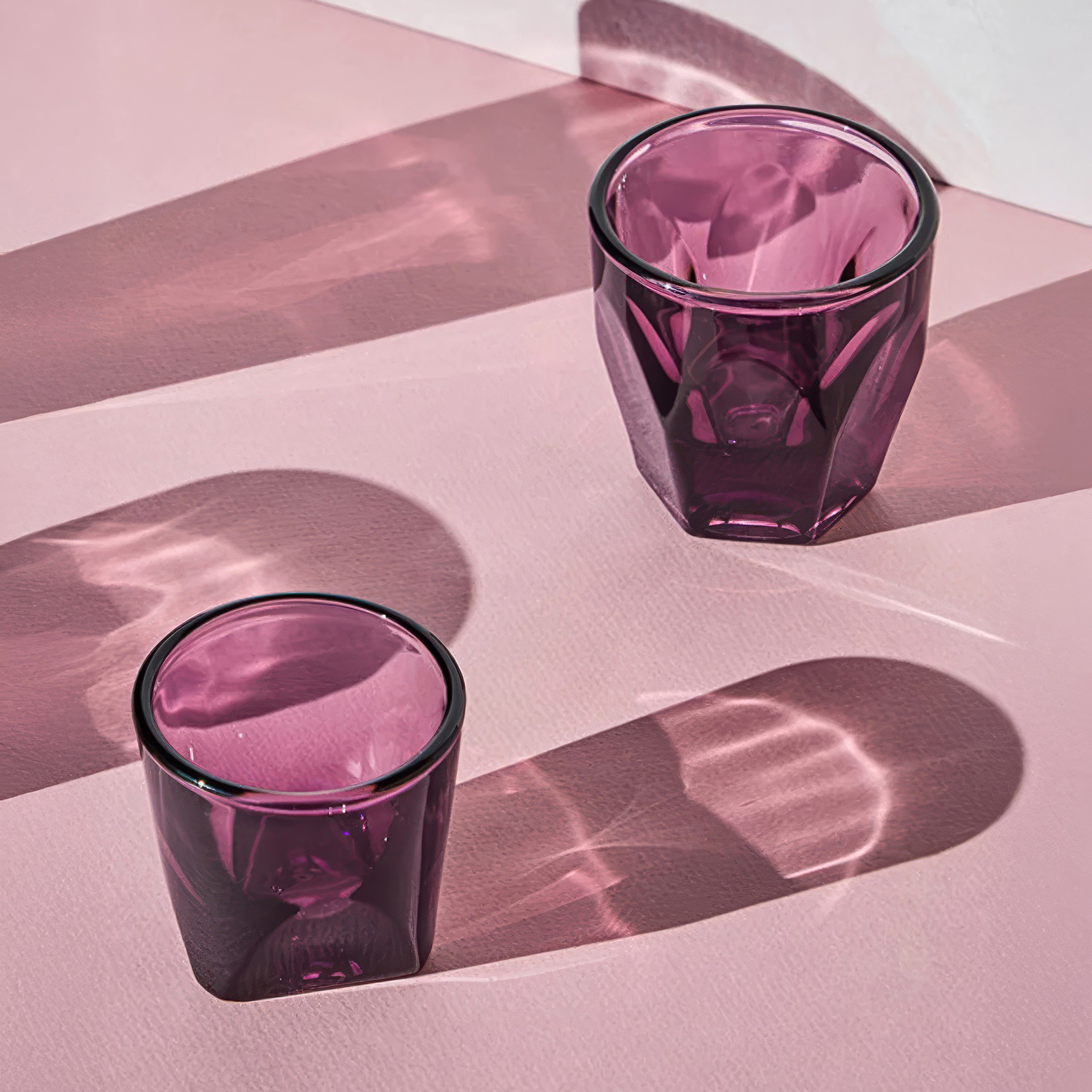 This beautiful version of the cortado glass features exaggerated facets for a more modern appearance, as well as technical improvements for specialty coffee.
