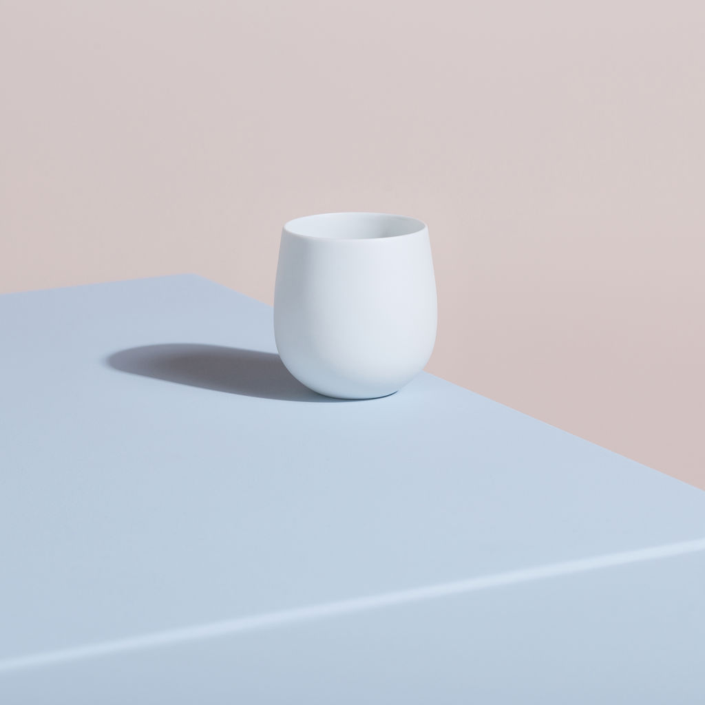 These polished matte white cups are available with a glazed colour interior in Feijoa (green) or Milk (white).