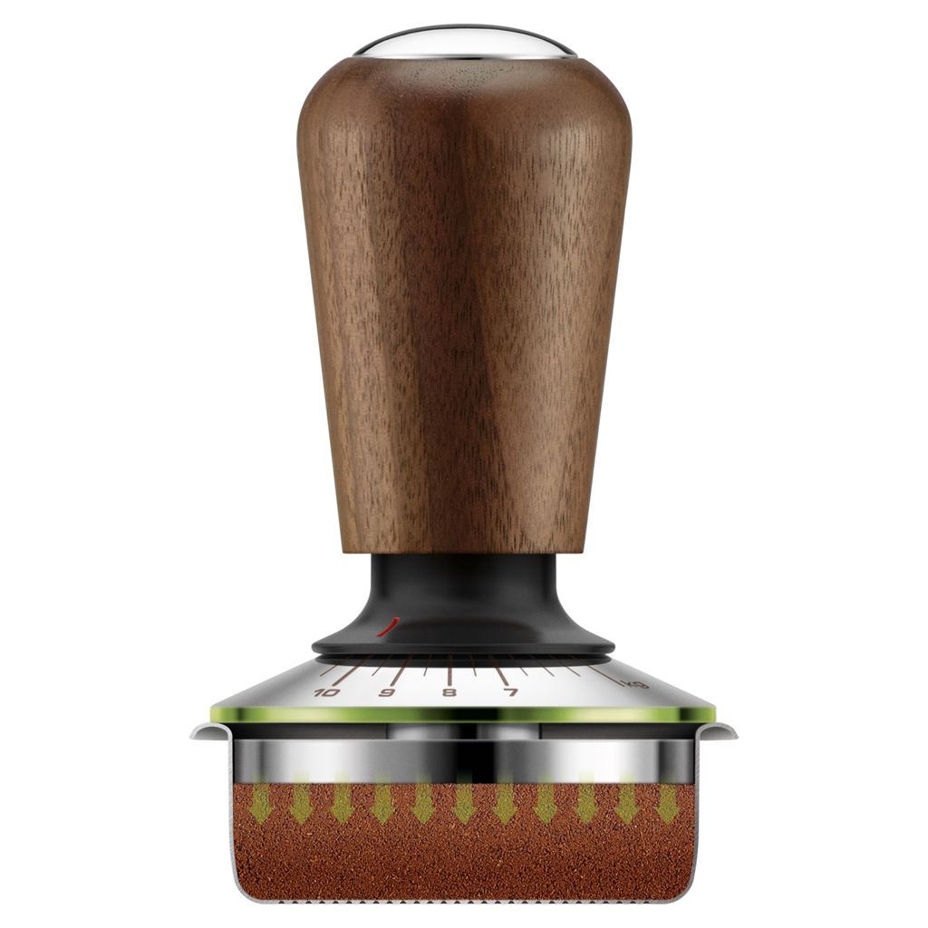 The spring-loaded mechanism ensures constant pressure, and the variable force gauge allows you to apply the desired tamping force to the grind.