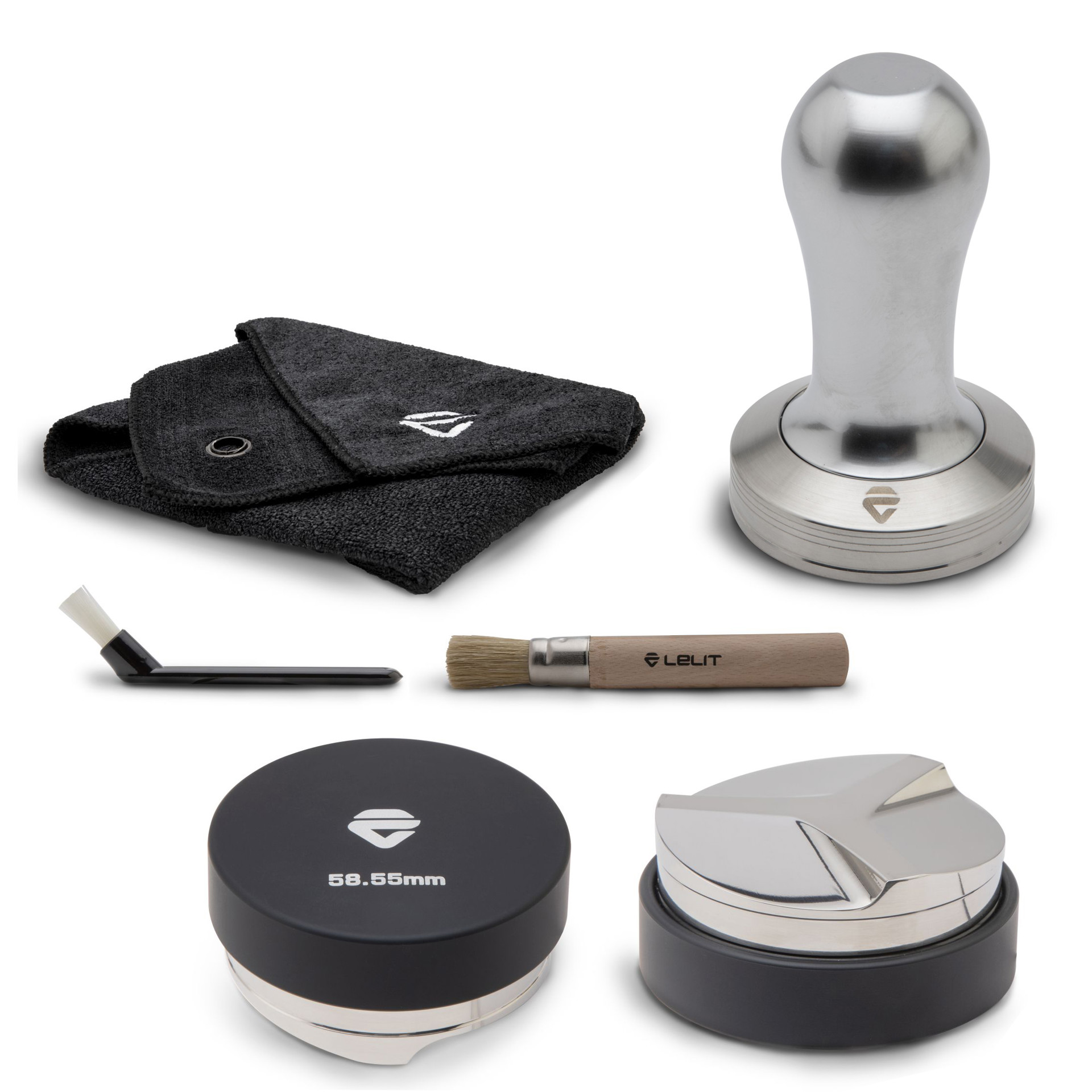 Tamper, Leveller, Microfiber Cloth and Brush Set Lelit *LEPLA481A+LEPLA482A+LEPLA9101
