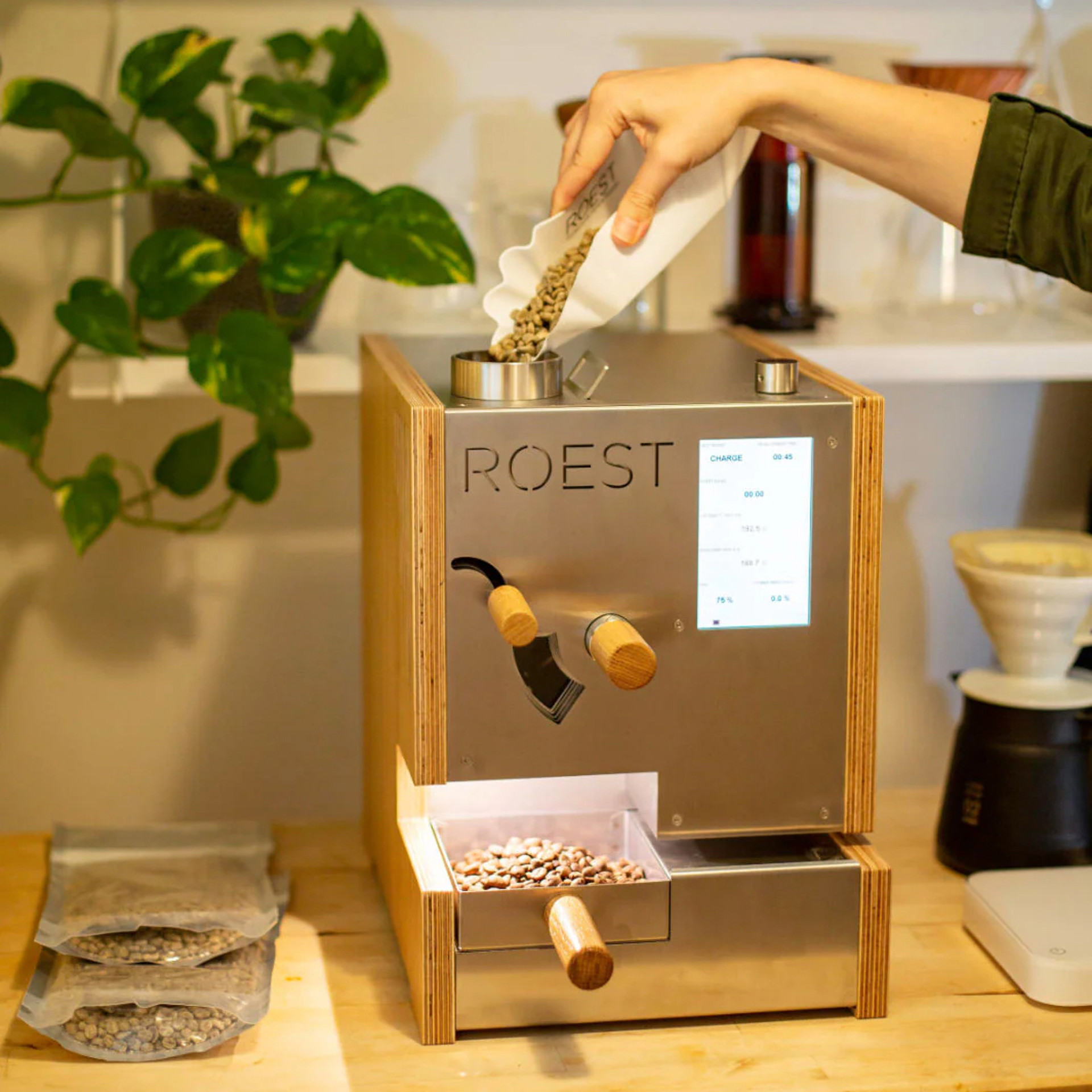 With its modern Scandinavian design and wood-accented structure, the S100 Plus prioritizes automation and efficiency. Four intelligent sensors, including first crack detection and coffee adaptability, ensure professional-grade precision and consistency, while flexible control options allow full customization of the roasting process from start to finish.