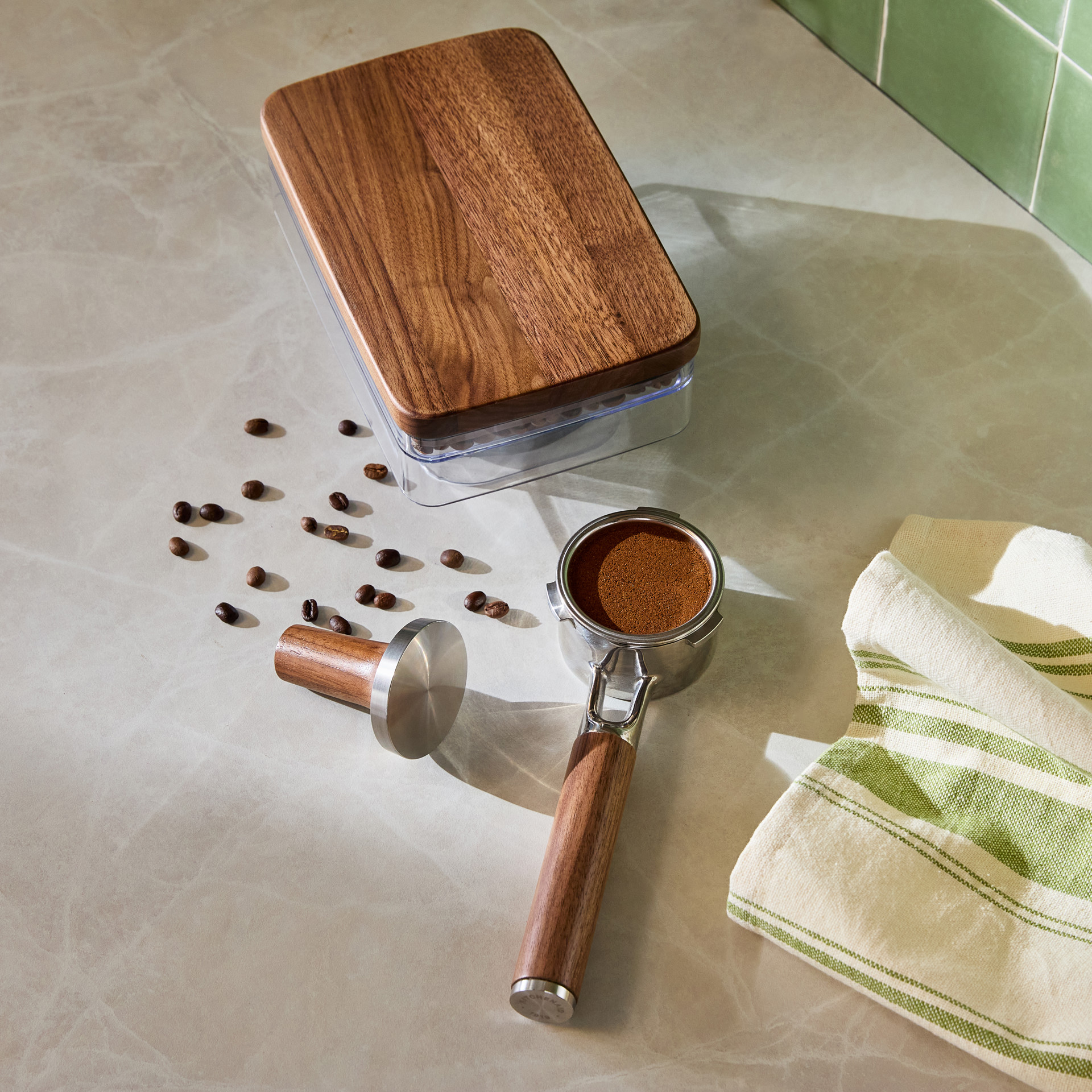 Its genuine walnut handle combines elegance and ergonomics, providing a comfortable and perfectly balanced grip for consistent tamping every time.