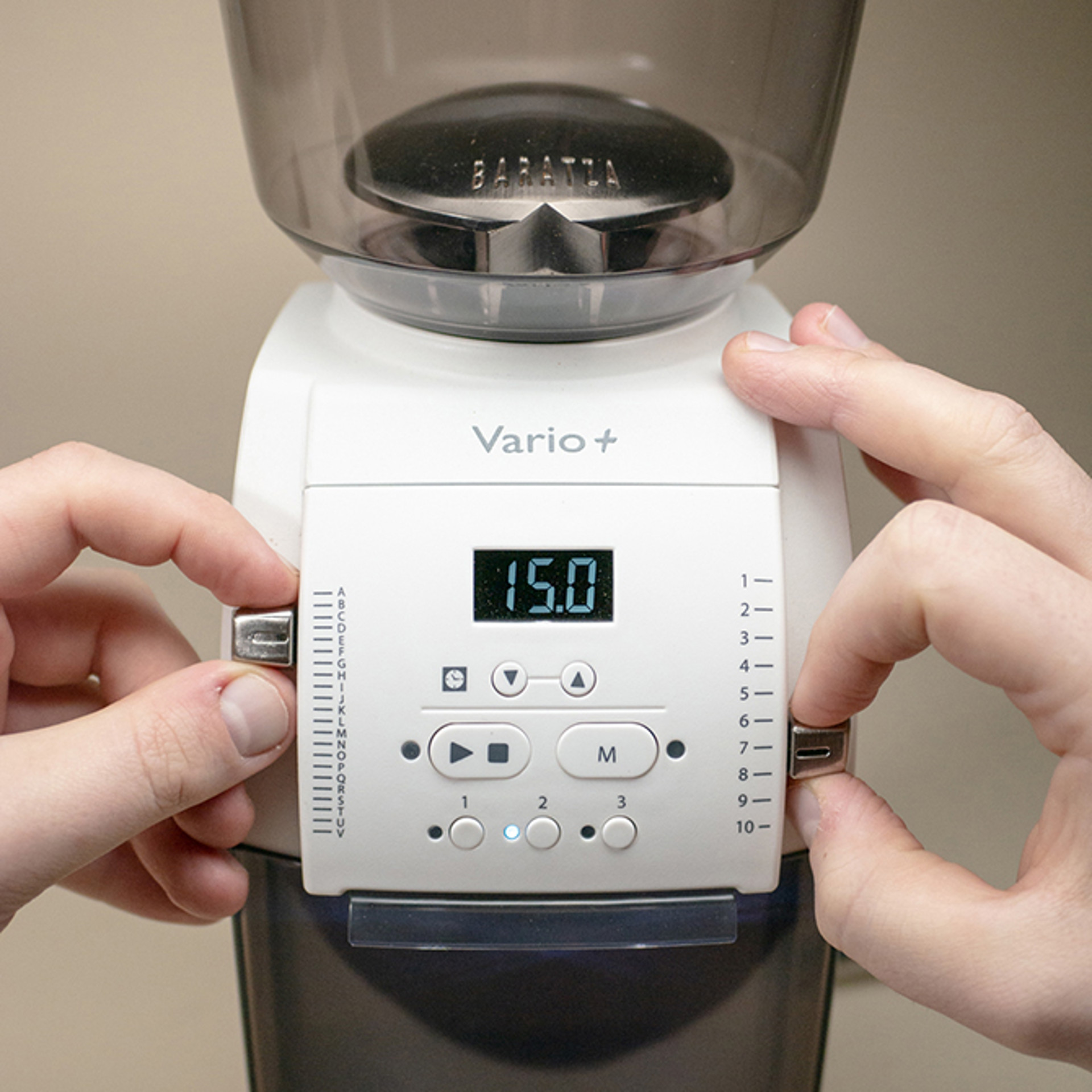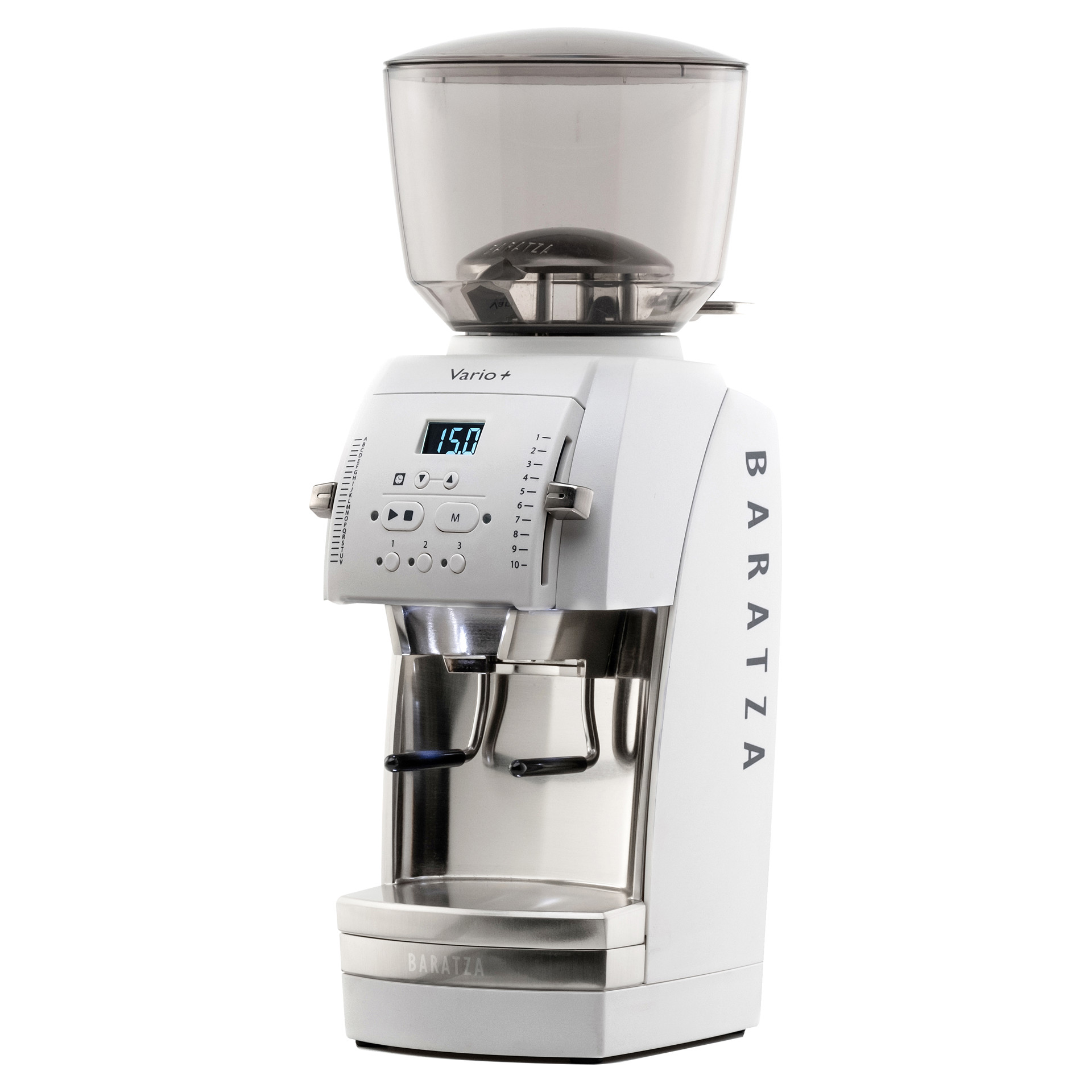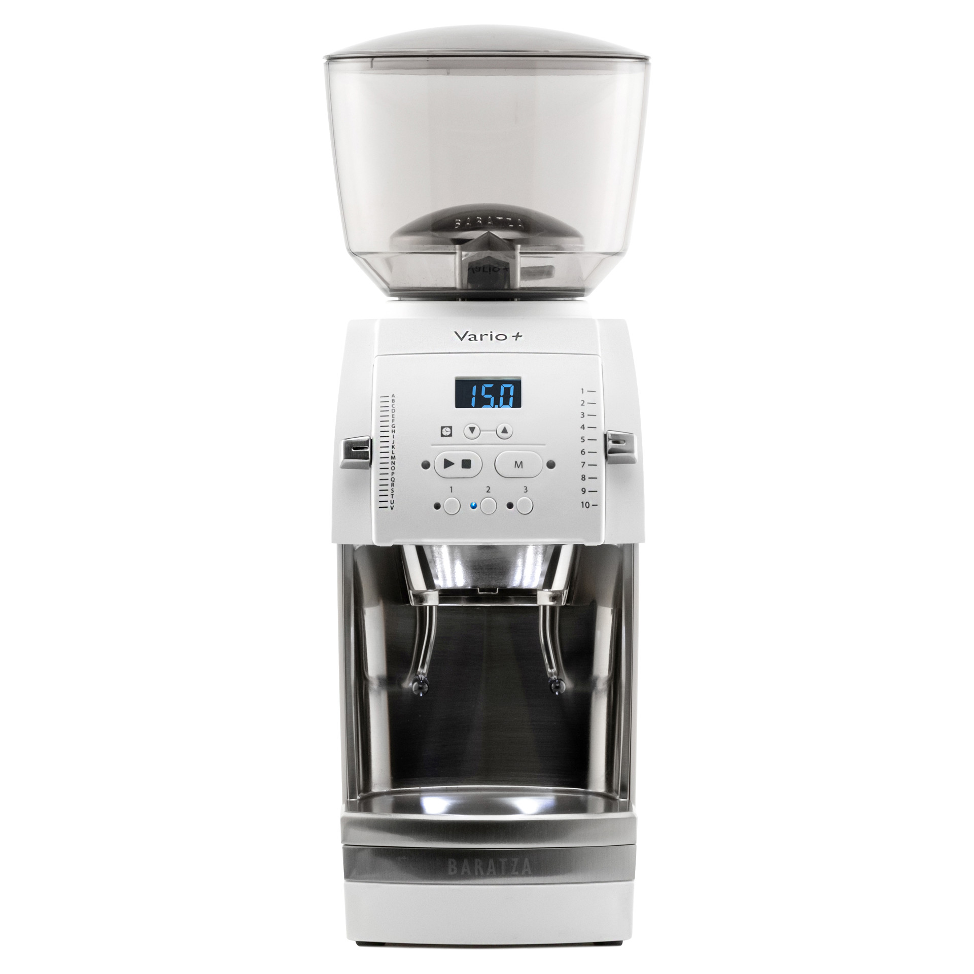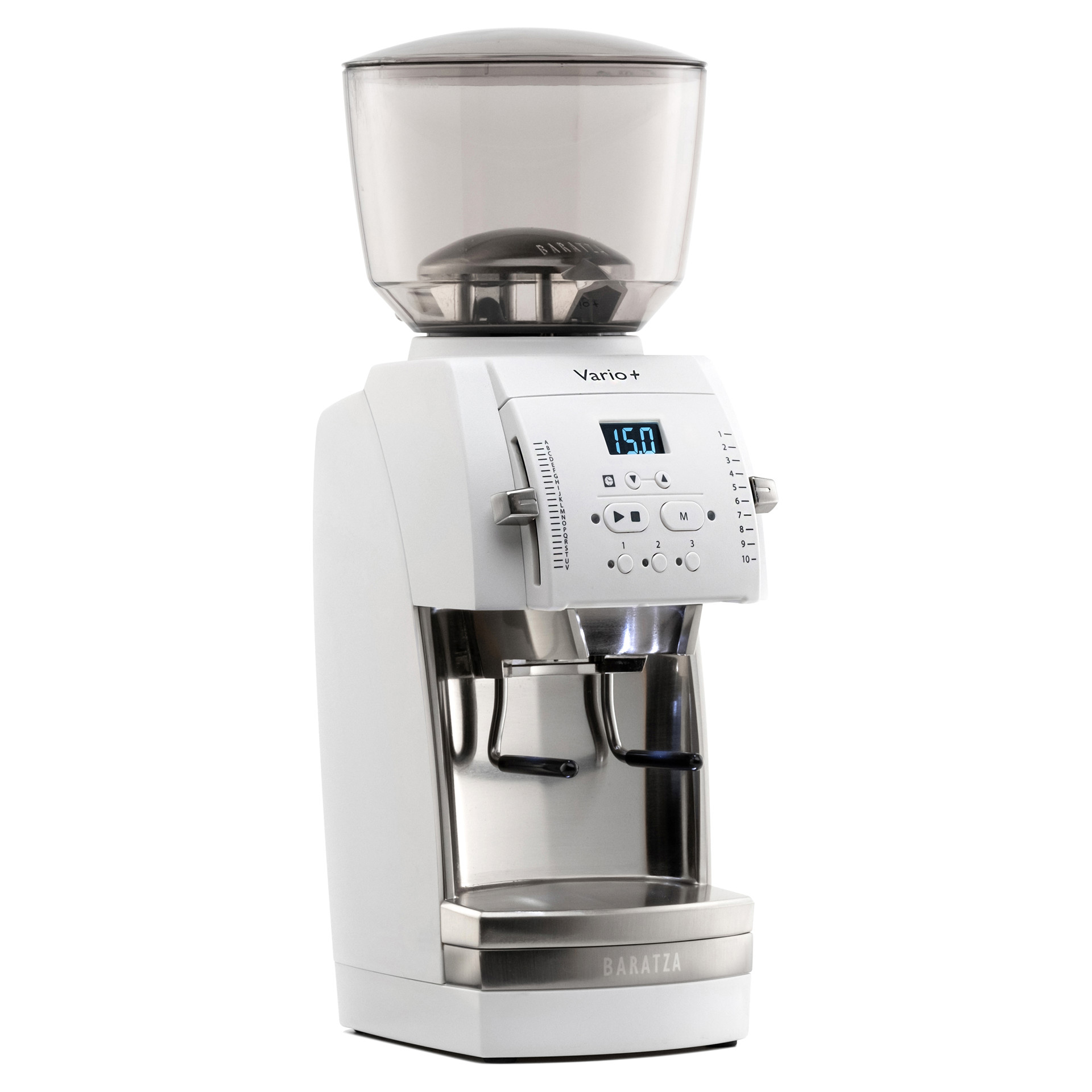 The Vario™+ delivers flat burr grinding for café-quality coffee in a compact format. Program and save up to three grind times for convenient hands-free dosing with the included portafilter holder.