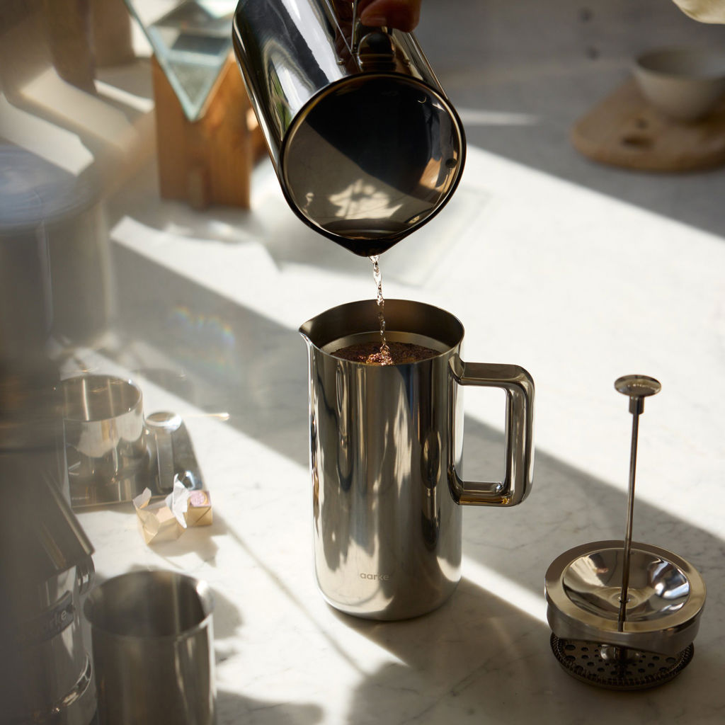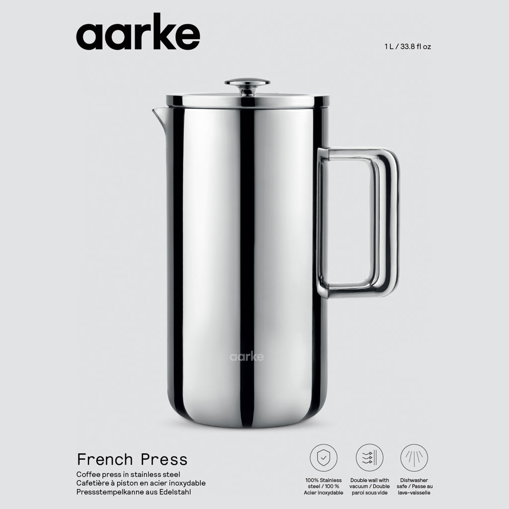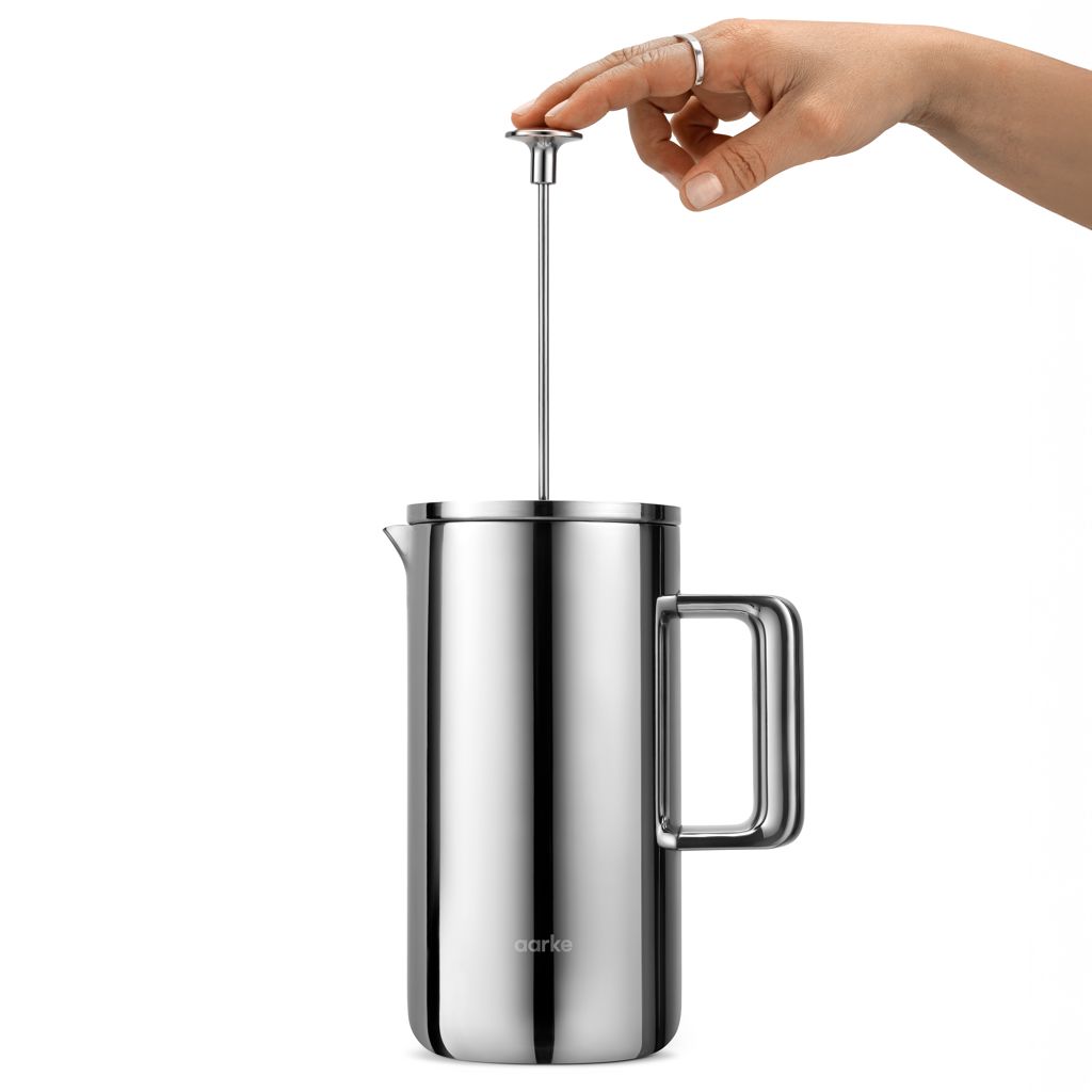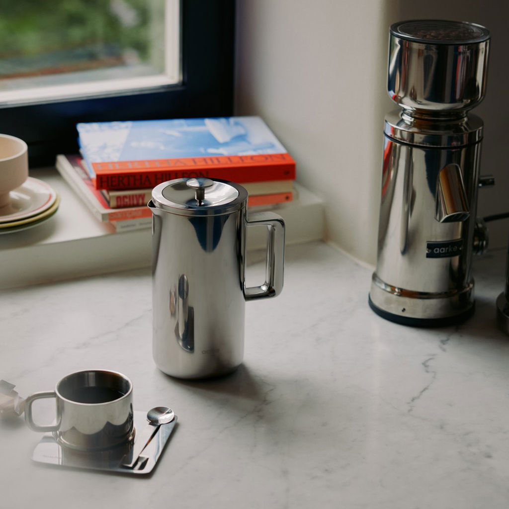 Entirely crafted from stainless steel, the Aarke French Press combines precision engineering with timeless tradition. Its double-walled, vacuum-insulated body keeps your coffee hot and flavorful long after brewing. Every detail is made to last,  from the fine mesh filter to the cool-to-the-touch finish. Designed for performance and presence alike, it’s an enduring object for your daily pursuit of the perfect cup.