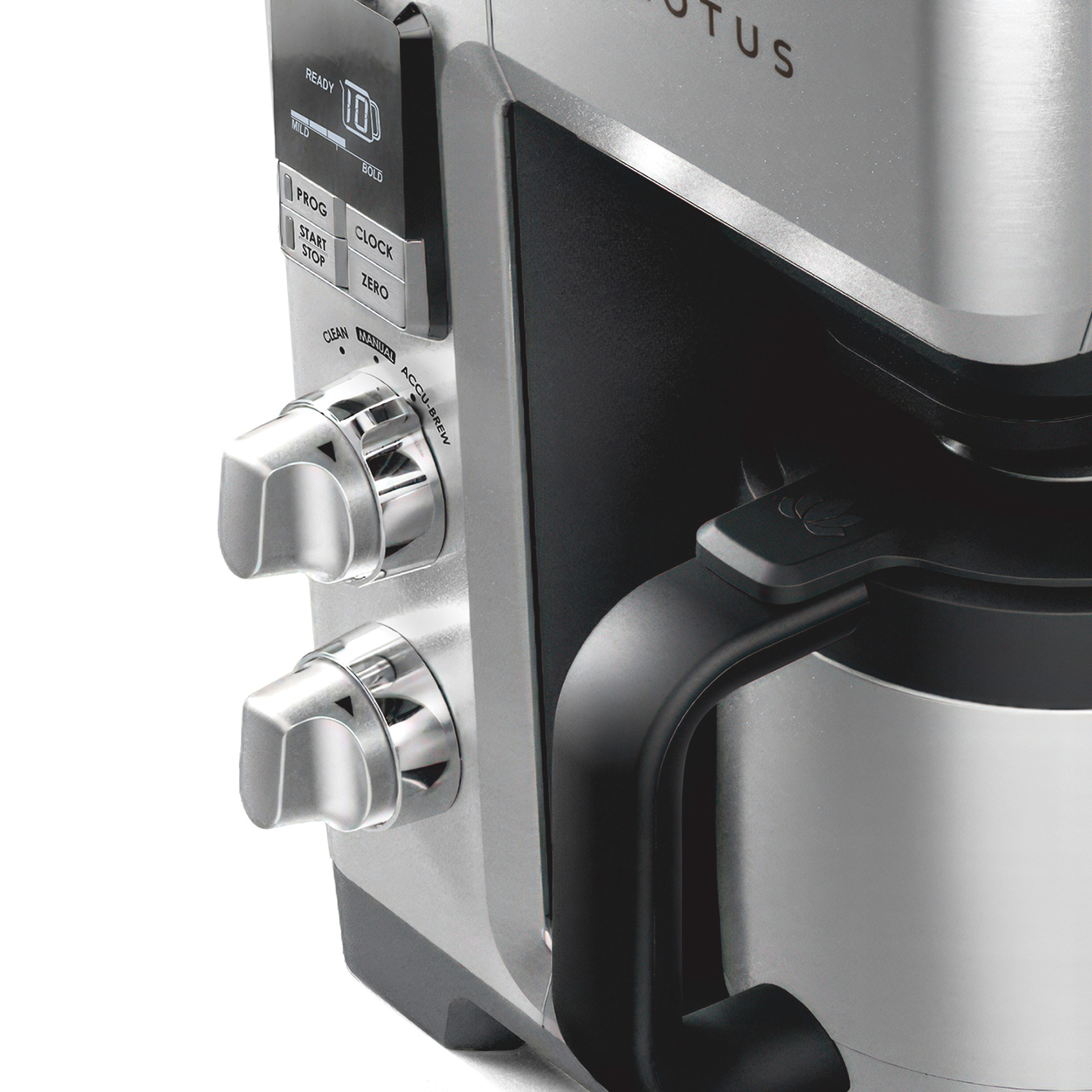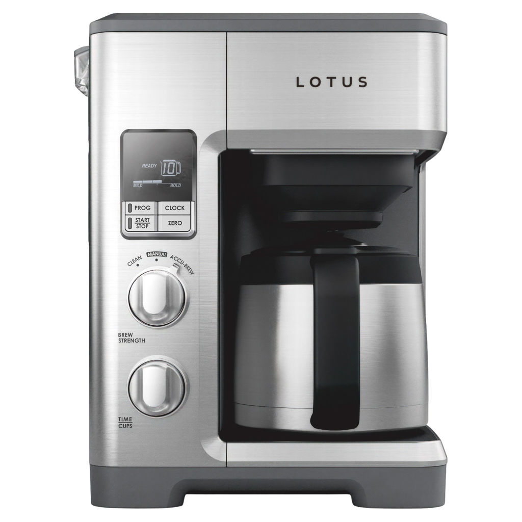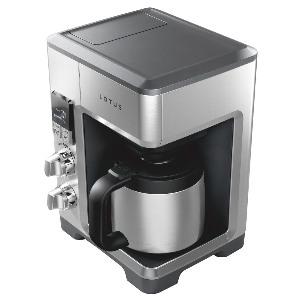 Designed with thoughtful details like a front-loading brew basket, a side-mounted removable water tank, and a thermal carafe.