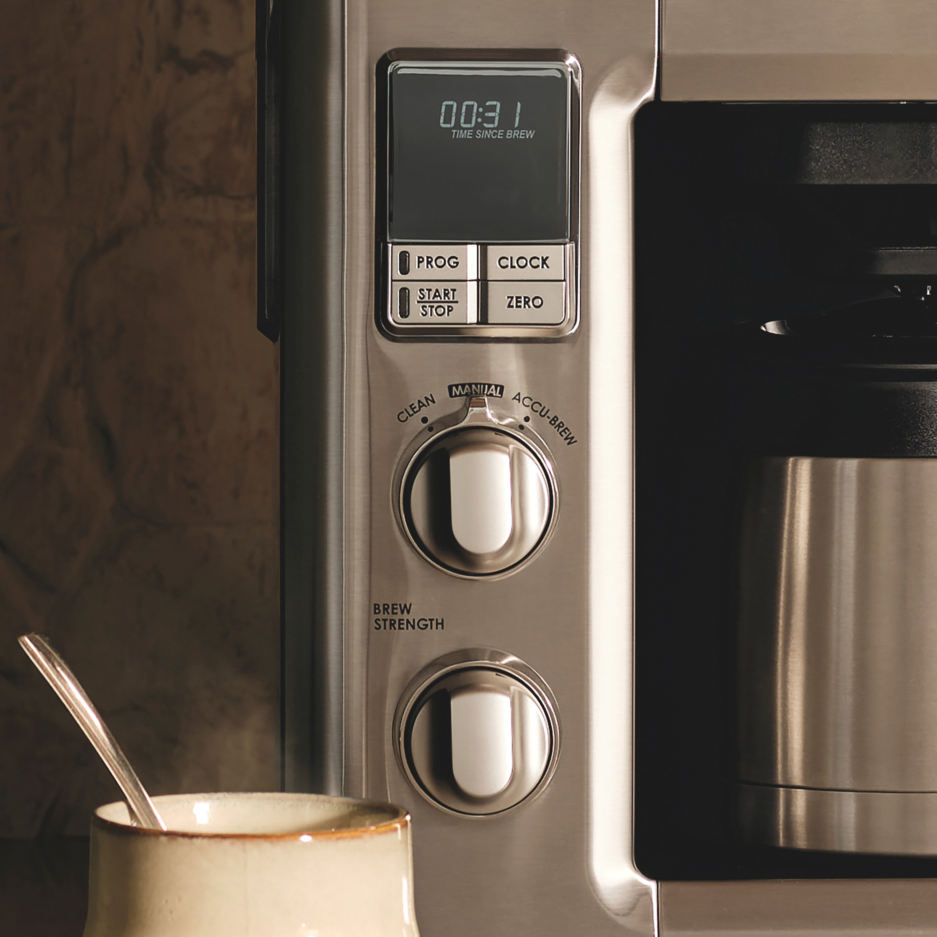 The Accu-Brew™ setting lets you choose the number of cups and desired strength, then weighs the grounds and indicates when you’ve added the perfect amount.
