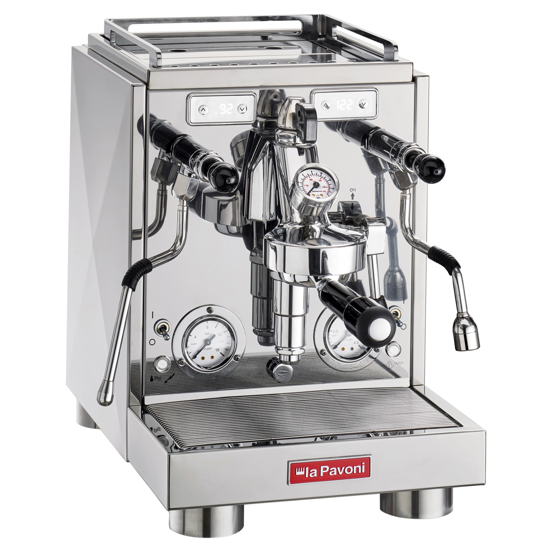 • Dual copper boilers with double insulation, plus the ability to switch off the steam boiler for energy savings