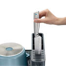 • Integrated rail for cutting boards and scratch-resistant draining prongs