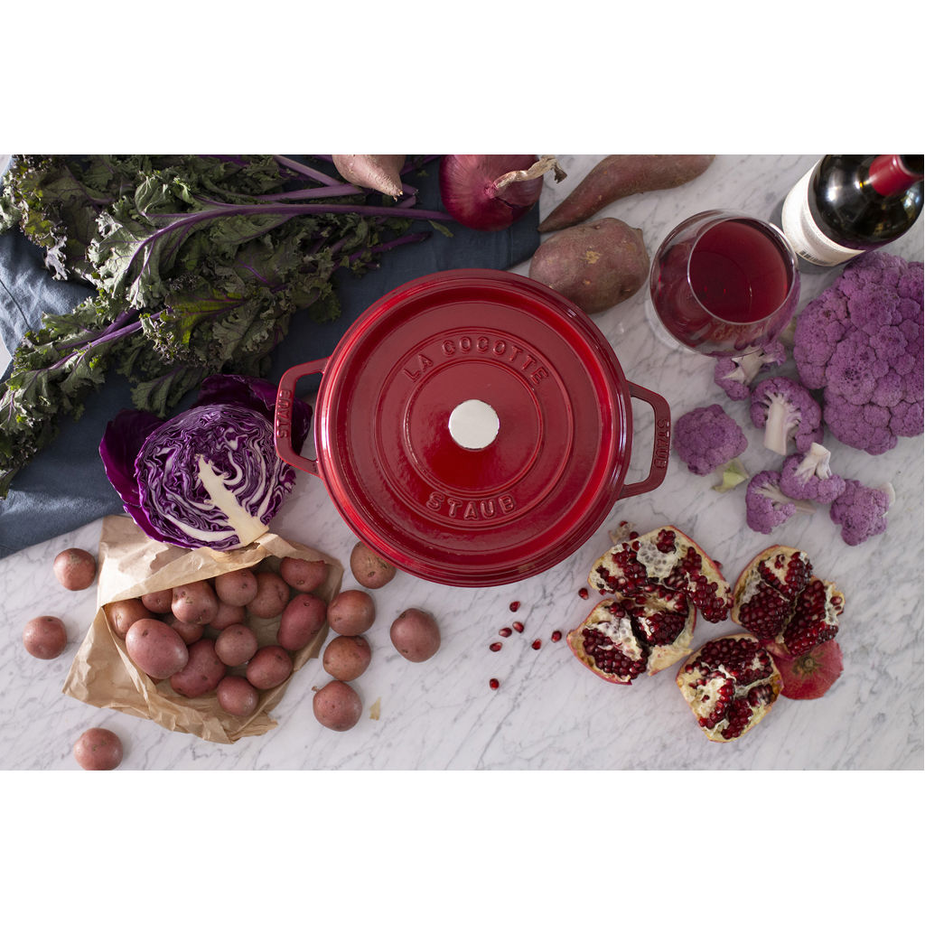 The Staub cocotte dish is unsurpassed when it comes to slow-cooking meats and vegetables to tender perfection or simmering hearty stews and soups.
