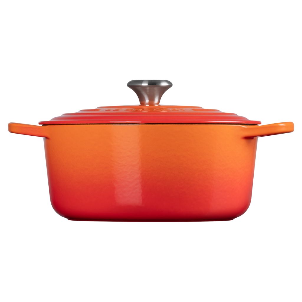The Round Dutch Oven is among the most versatile pieces of cookware and can be used for a number of cooking techniques, including slow cooking, simmering, braising and searing. Its rounded shape perfectly matches the burner size, exposing ingredients to a consistent heat source.