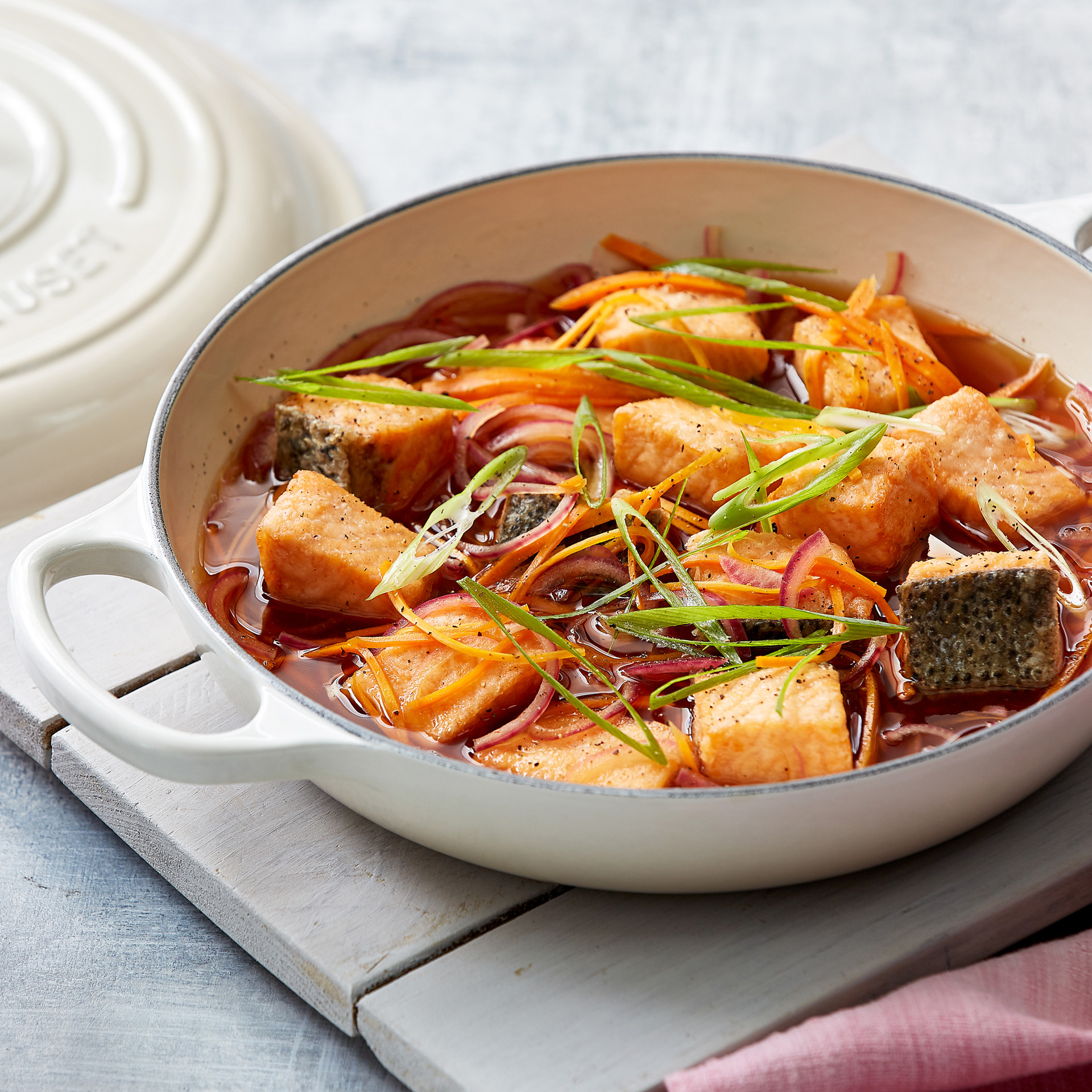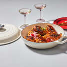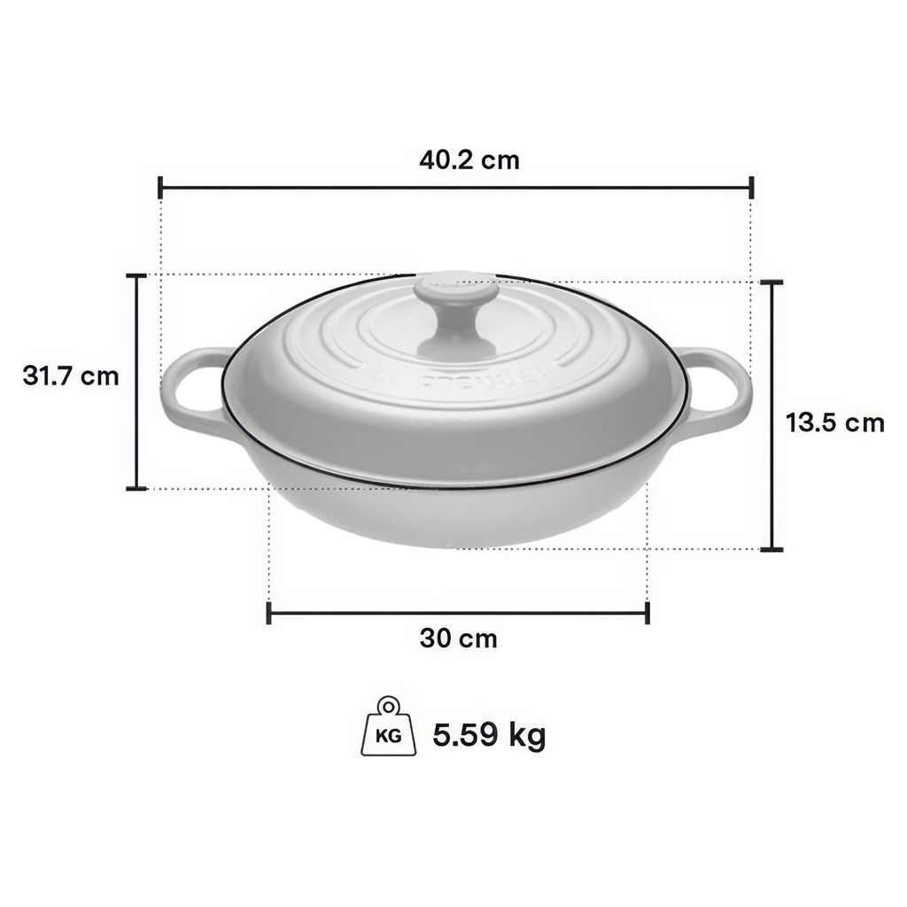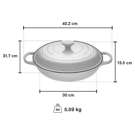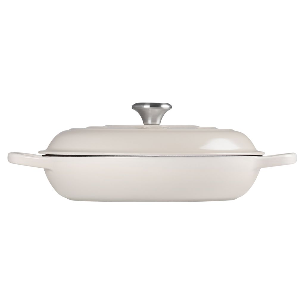 The versatile shape of the braiser also makes it perfect for shallow frying, steaming, stews, casseroles and serving at the table.