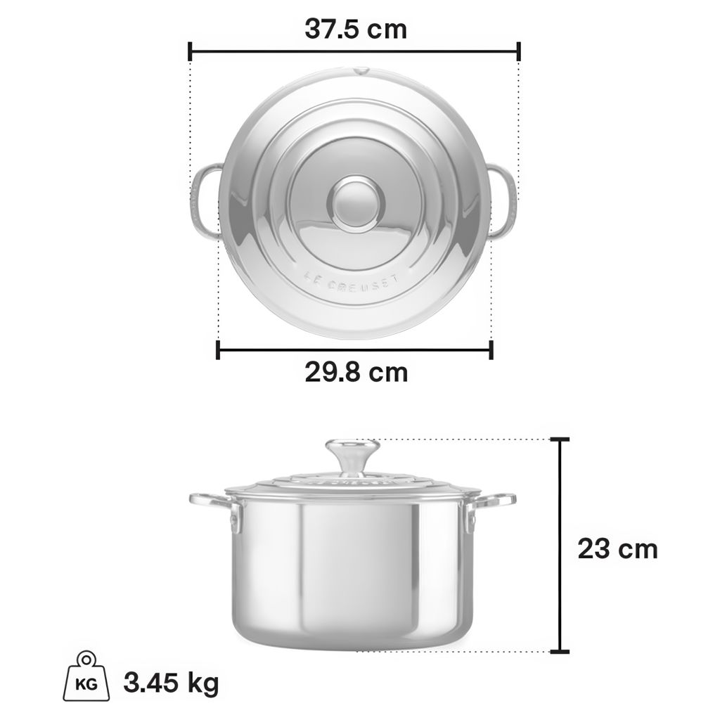 Le Creuset’s Stainless Steel Stockpot with Lid is perfectly suited to blanch vegetables or to boil pasta and grains. Featuring a three-layer construction, this award-winning Stainless Steel Stockpot is oven-safe and goes from stovetop to tabletop with ease.