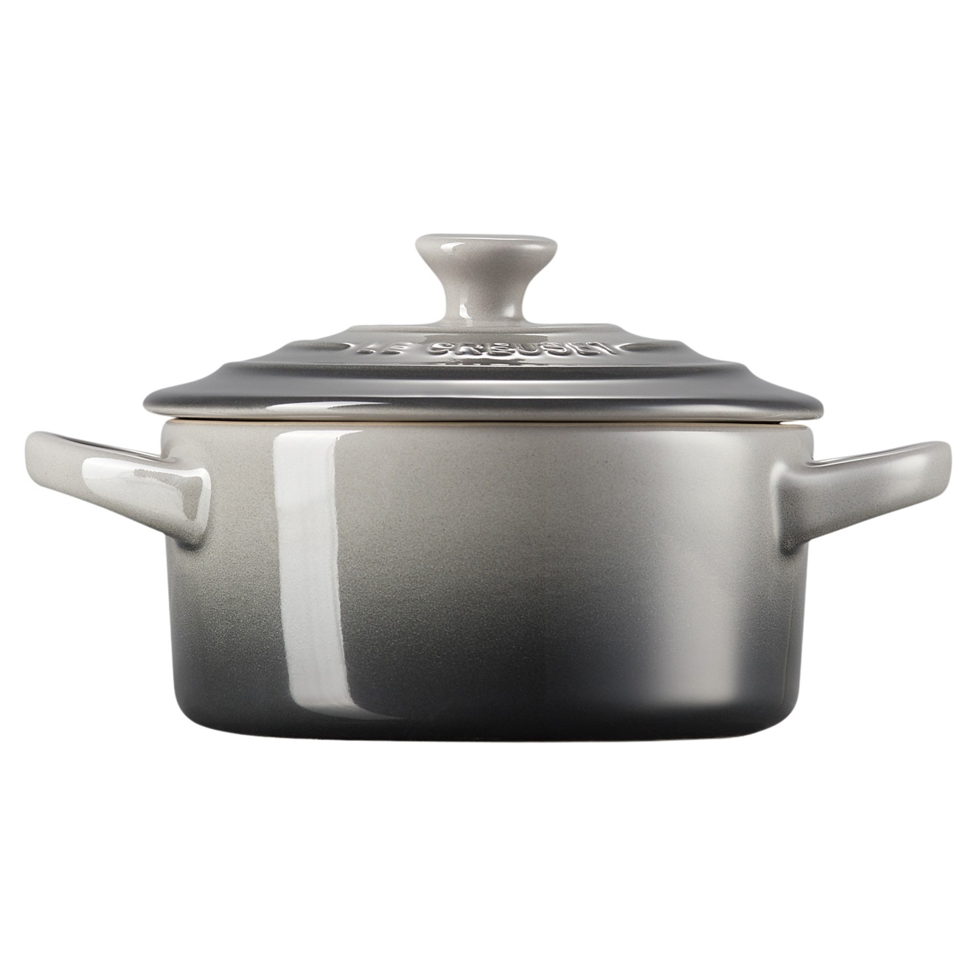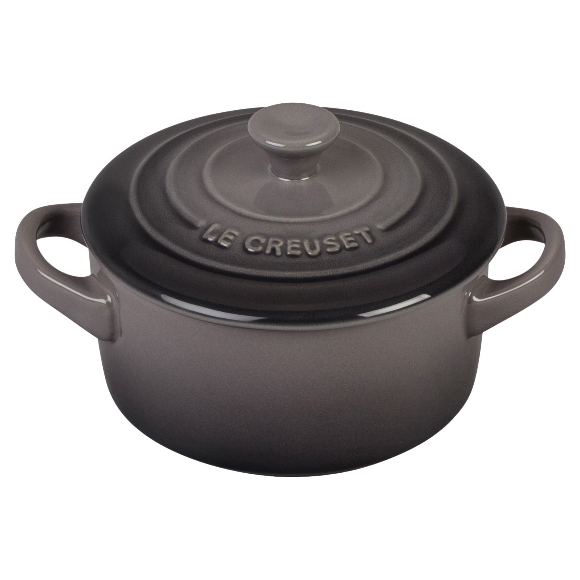 This compact stoneware dish is specially designed for individual preparation and presentation, and is styled after Le Creuset's legendary Round Dutch Ovens, complete with a ringed lid, raised Le Creuset lettering and side handles.