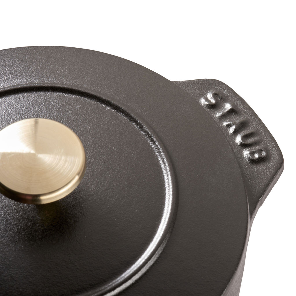 The 750 ml French cocotte in cast iron is the newest addition to Staub’s legendary line of cocottes. This charming little pot is perfect for personalized cooking. Reheat stews, soups, and side dishes deliciously thanks to the new signature Staub lid.