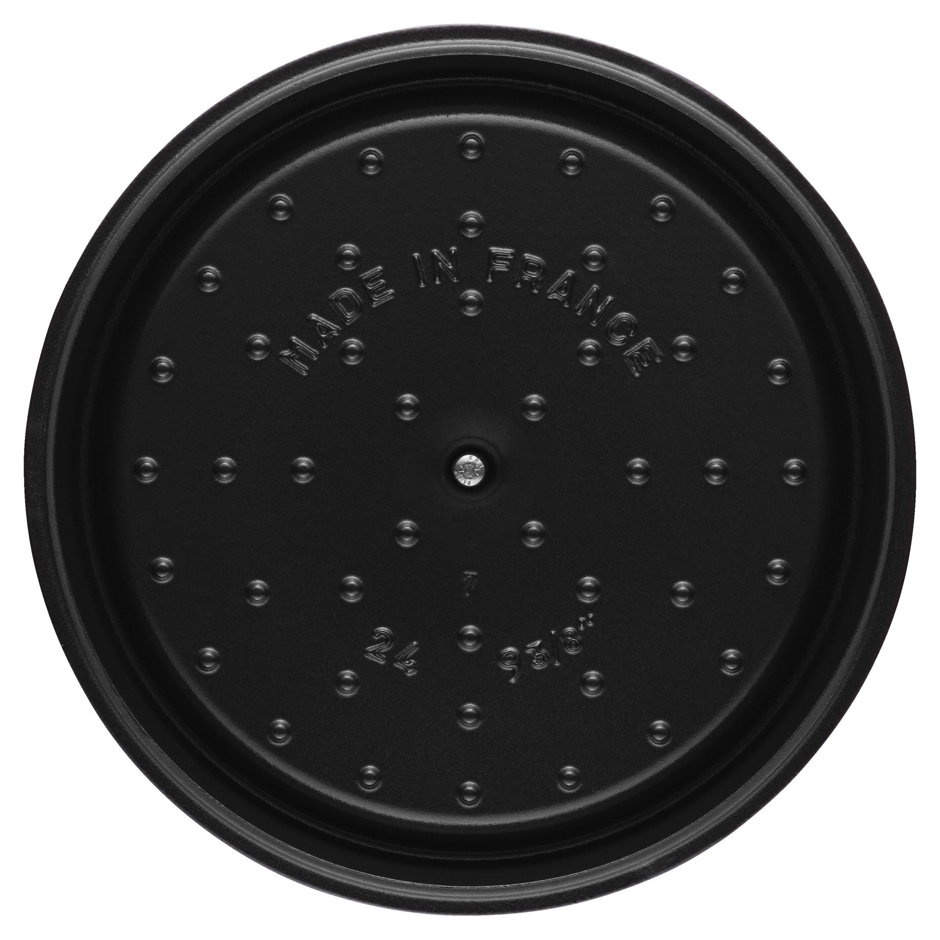 The specially designed lid collects condensation and redistributes it evenly over food, while the silver knob allows for easy lifting.