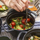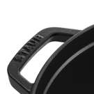 These side dishes are sure to win over friends and family when served in such an attractive, steaming-hot vessel. Its sleek design blends seamlessly into rustic, country-style décor as well as more modern interiors. The subtle shimmer of the black exterior and the nickel-plated knob give this piece an even more elegant appearance.