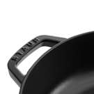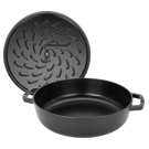 The 28 cm multifunctional roasting pan from Staub comes with a lid featuring Staub’s unique 'Chistera drop structure'. The structure on the inside of the lid causes condensation to evenly drip back onto the cooking food ensuring that all the ingredients remain moist, aromatic and juicy. There is not need to frequently add water or other liquids when using this roasting pan.