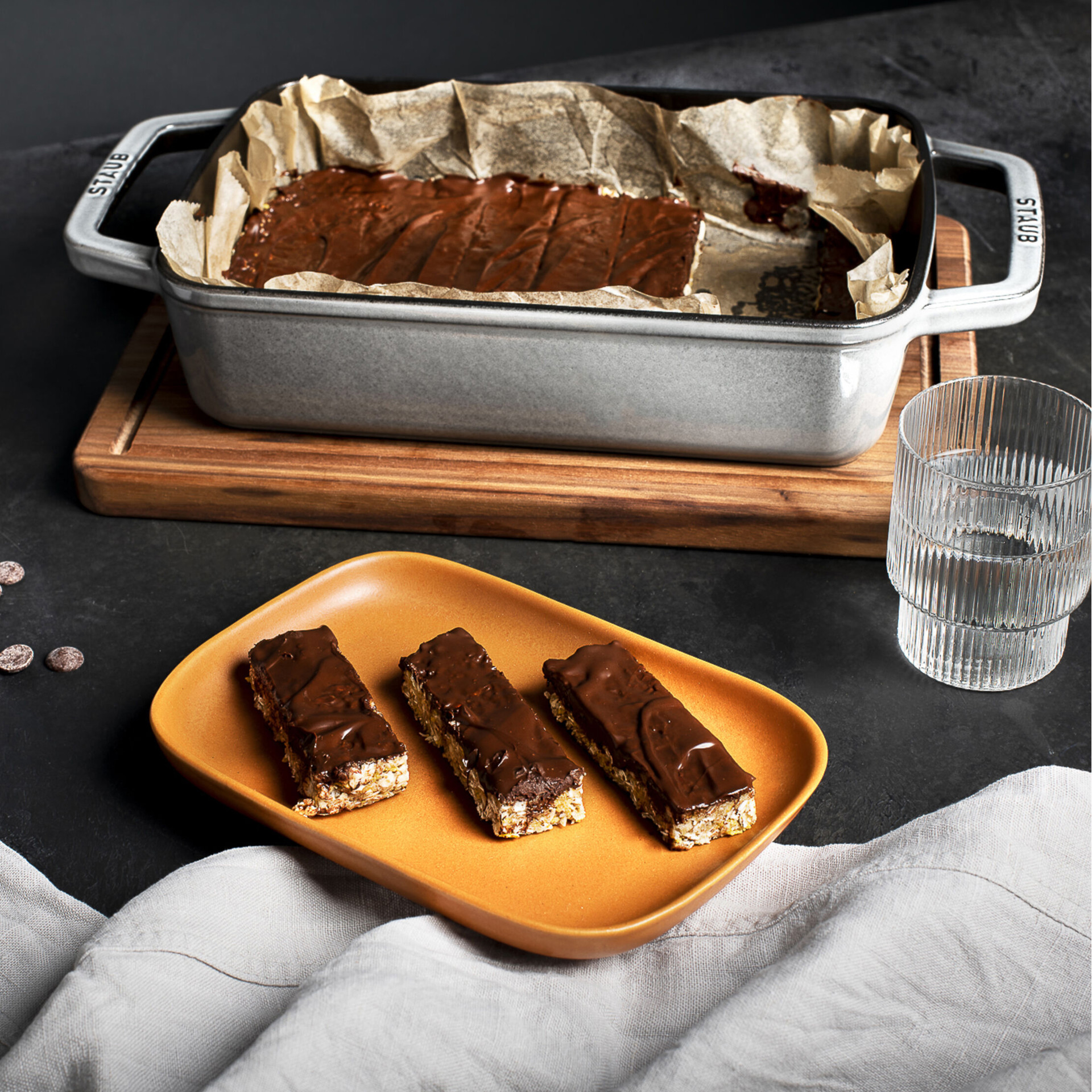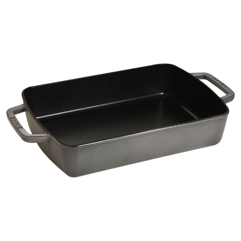 The Staub rectangular roasting dish lets you prepare flavorful meals both on the stovetop and in the oven. It’s ideal for classics like lasagna, moussaka, and scalloped dishes.