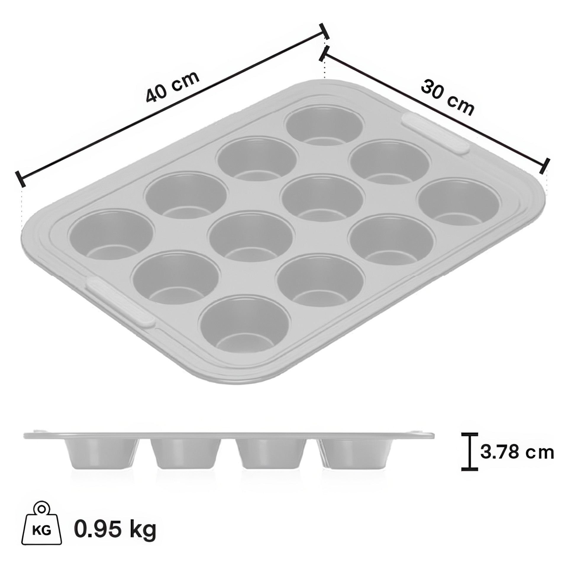 Constructed with heavy gauge carbon steel, our 12-Cup Muffin Tray is built to last. This piece of cookware is designed to maintain even heat distribution, preventing hot spots and scorching. Its heat-resistant silicone rim ensures it can be easily transferred to and from the oven with ease.