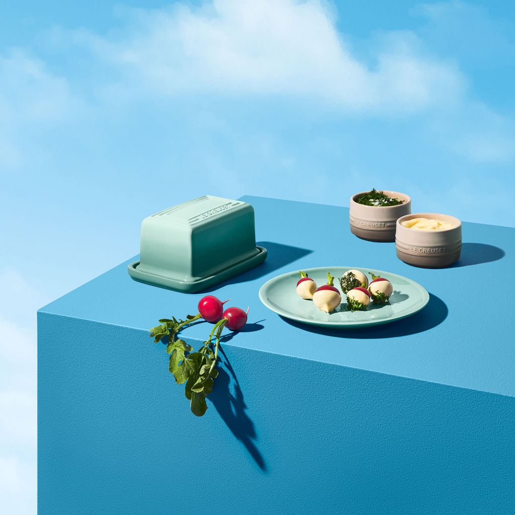 Our Butter Dish holds a standard 454 g block of butter perfectly, making it a great addition to your Le Creuset collection. Decorative yet functional, it is great for going from the refrigerator to the microwave and table with ease.