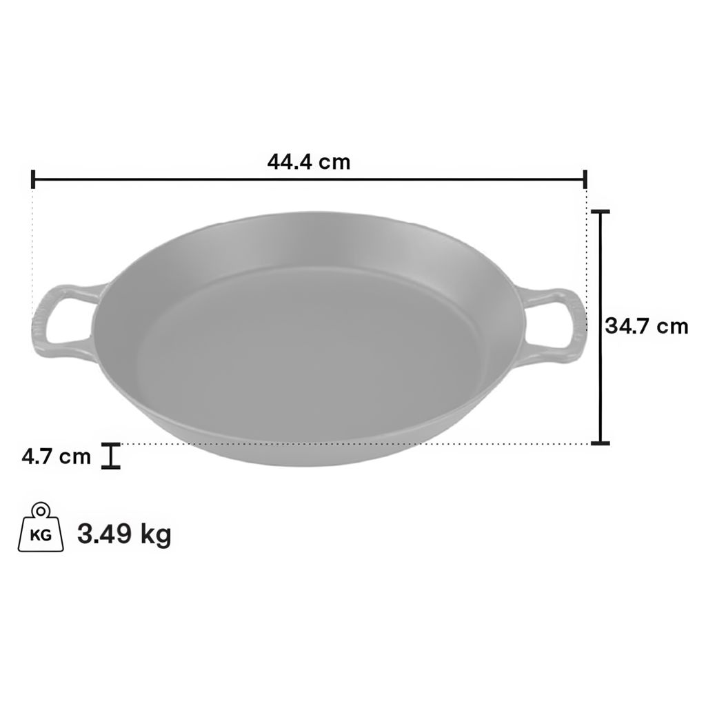 The Paella Pan does not require seasoning and is best used on medium heat. Its wide, loop handles guarantee a comfortable, yet secure grip when transferring this piece of cookware from the stovetop to the table.