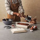 Le Creuset’s Stainless Steel collection combines European craftsmanship with premium materials. Its three-layer construction is crafted with a proprietary blend of professional-grade metals, featuring a heat-responsive aluminum core.