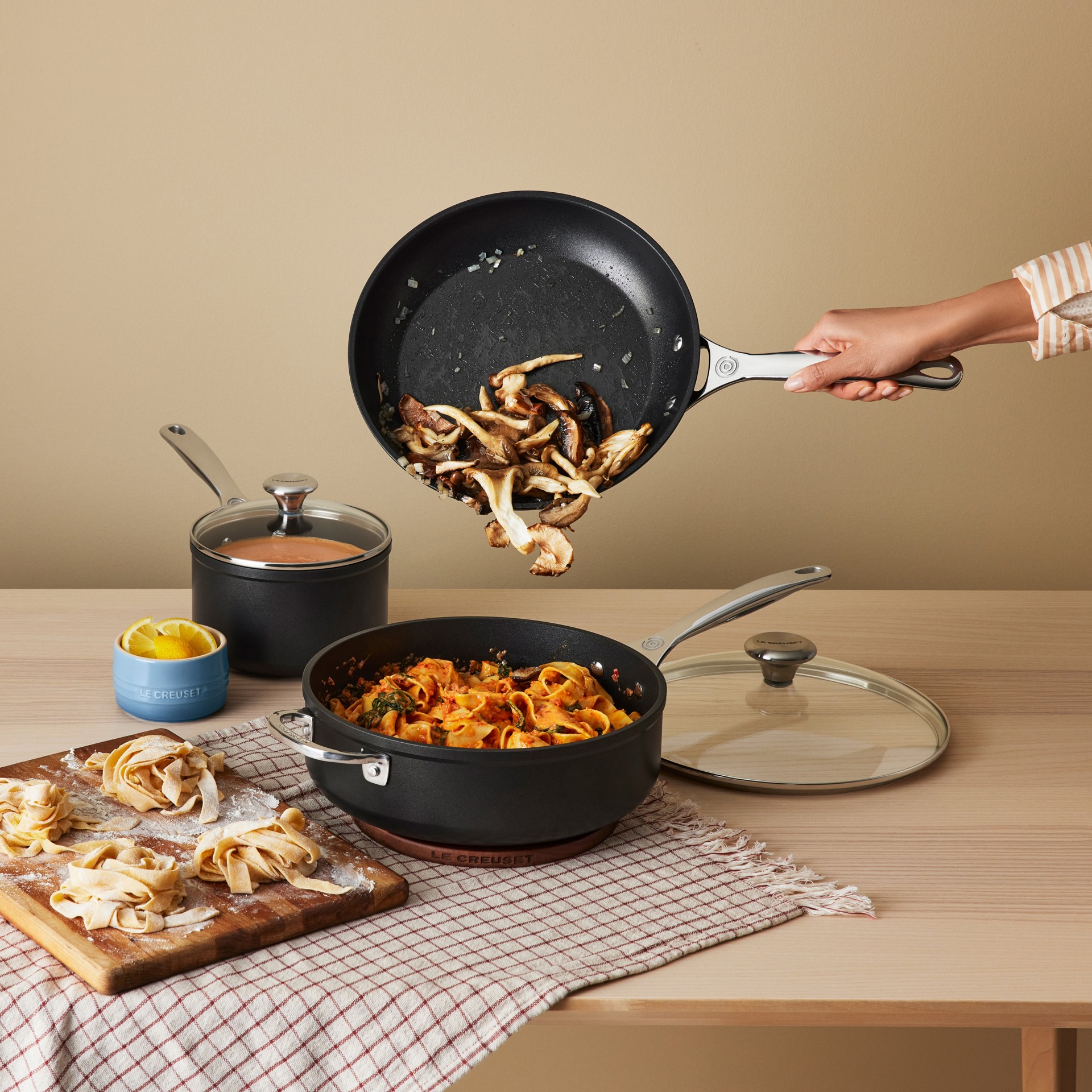 The Toughened Nonstick Pro Fry Pan is an essential piece of cookware in your Le Creuset collection. This nonstick fry pan excels at cooking delicate egg dishes, pan-frying, sautéing, and even baking.