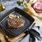 Many experts recommend a grill pan when it comes to grilling premium-quality meat.  This square pan comes with a practical short handle, and its ridged cooking surface gives food the characteristic seared grill marks. The American-style grill pan measures 26 x 26 cm (10" x 10") with a height of 4.7 cm.