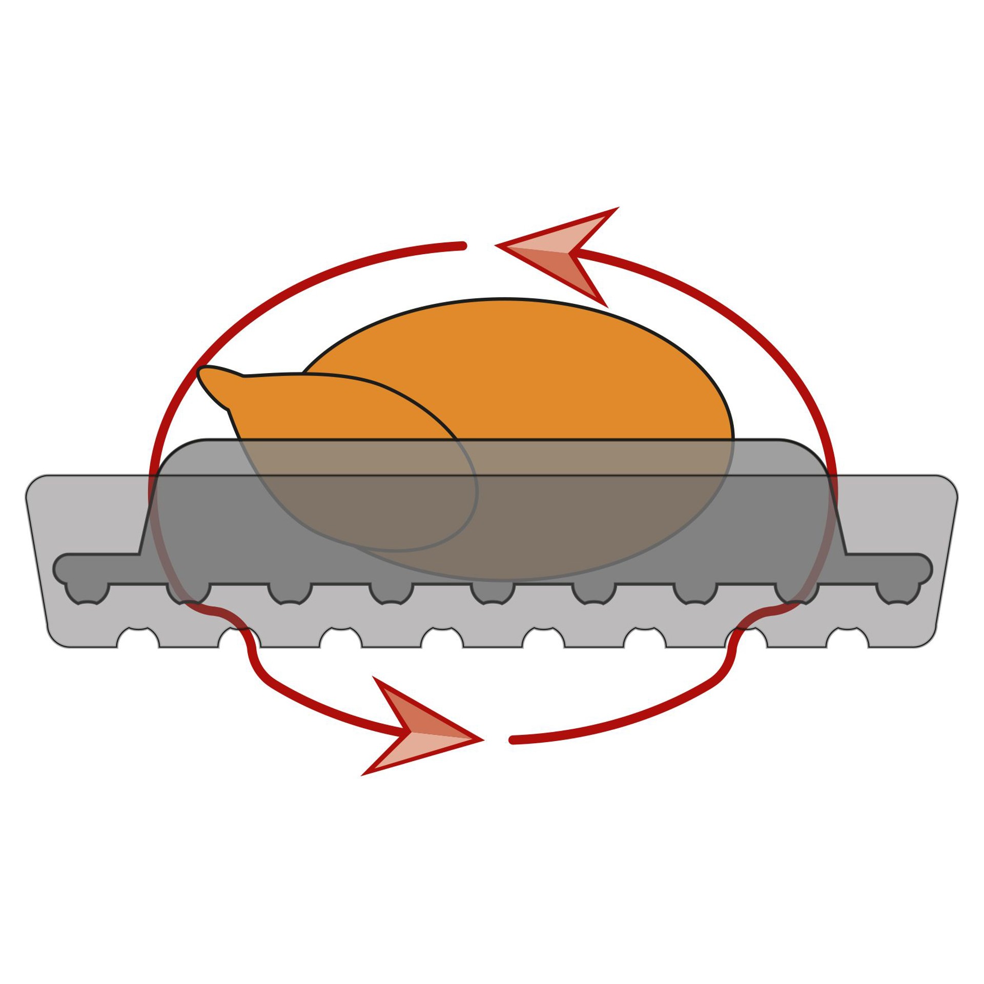 Airflow roaster for all-round 360-degree even cooking by air circulation. It cooks 25% faster than traditional roasters.