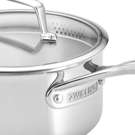 The saucepans, sauté pan, and stockpot all feature tempered glass lids that lock in moisture, along with two built-in straining hole sizes on the sides. Simply align them with the pour spouts to drain liquids with ease.