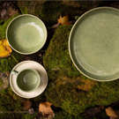 Ceramic is a type of dinnerware made from clay fired at high temperatures until it reaches a glass-like density, resulting in a highly durable material with the appearance and quality of stone.