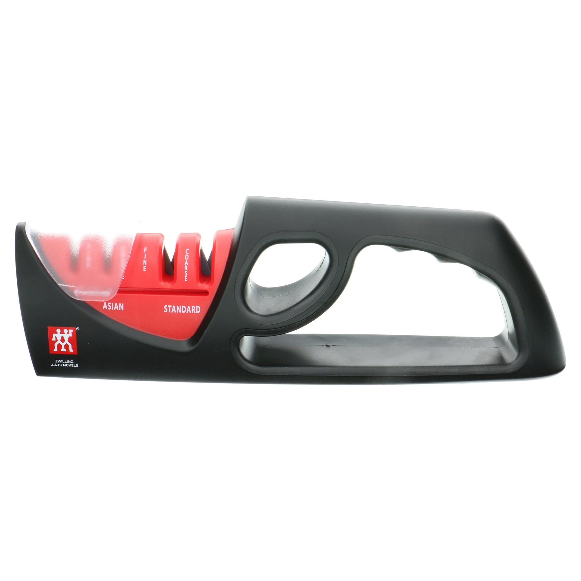 The safety handle protects your fingers and allows the sharpener to remain firm on a solid surface.