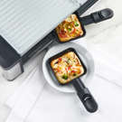 Feeling hungry? Make delicious s’mores or cheesy nachos in one of the eight non-stick pans with cool-touch handles. The heat-resistant scrapers are perfect for serving or for removing leftovers with ease.