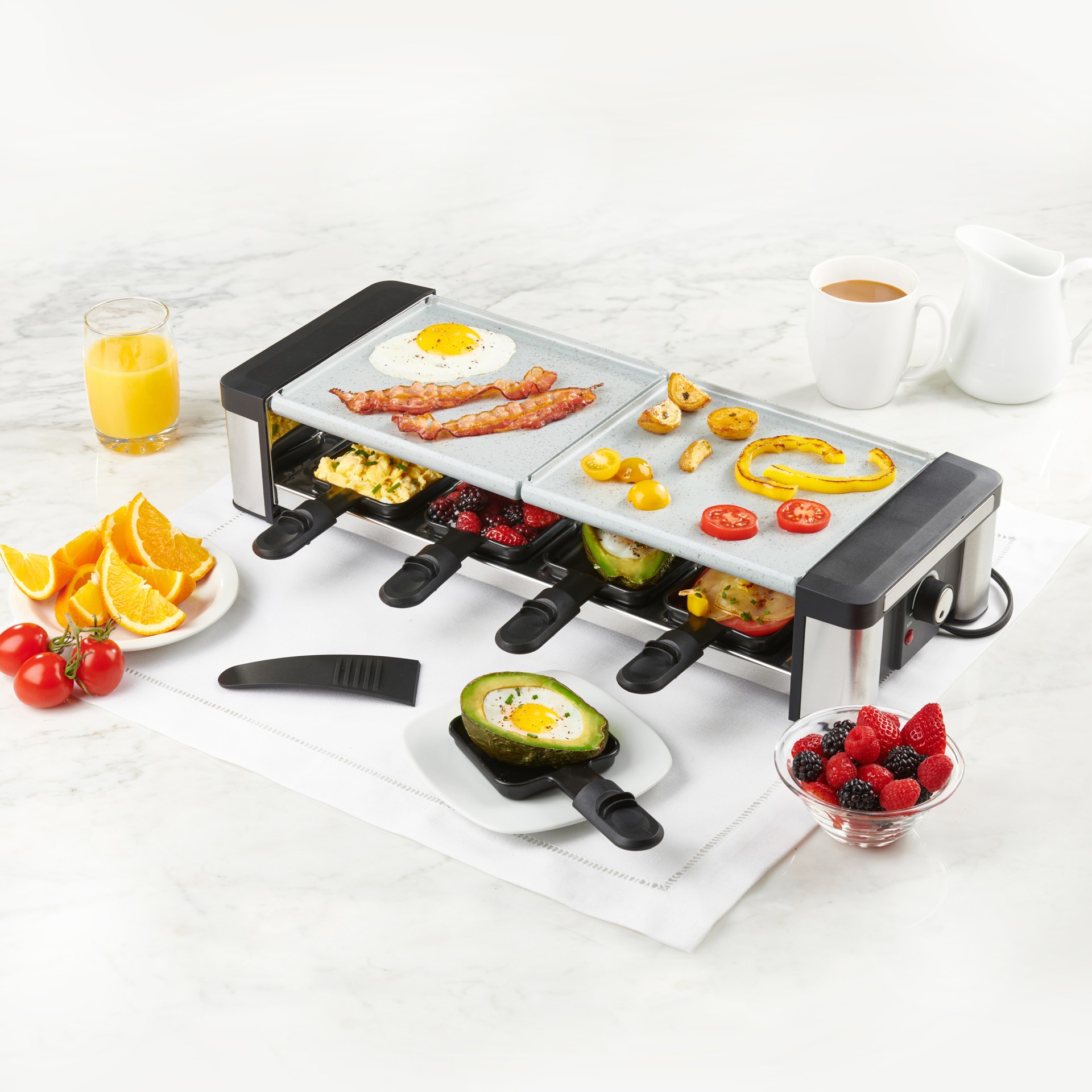 Part of the Trudeau Pure Collection, this reversible raclette set brings family and friends together to enjoy meals everyone will love. Creativity knows no bounds with this 19-piece set, featuring two reversible ceramic plates that are non-stick, PFOA- and PTFE-free.