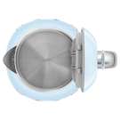 The pop soul of the KLF05 kettle is reflected in the variety of colors available: pastel colors like cream, green, pink and blue and bold shades like red, black and white highlight the chrome base and stainless steel details of the spout and on-off controls.