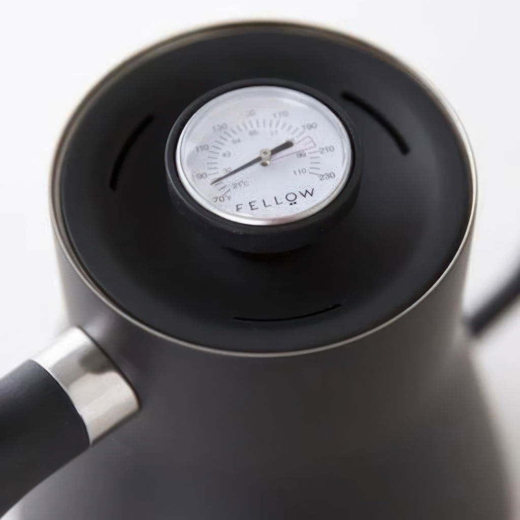 The FELLOW Stagg's beautifully functional design and precision pour spout kicks your brewing up a notch. Keep track of temperature with a built in brew-range thermometer. Pour at an even, slow pace with Stagg's counterbalanced handle that moves the centre of mass back towards your hand.
