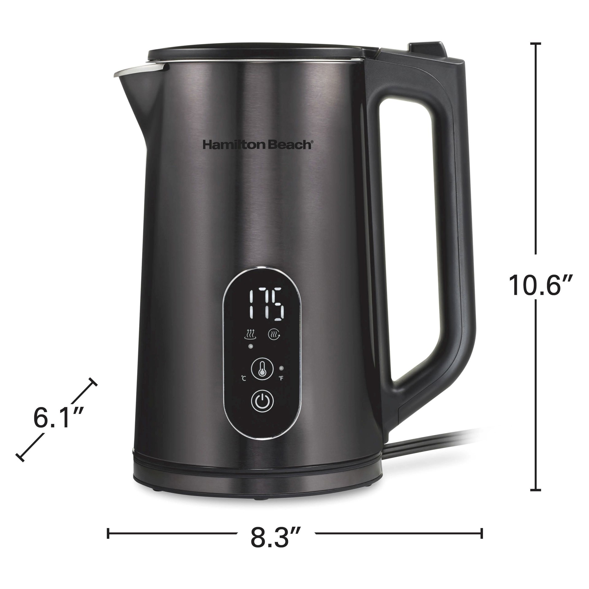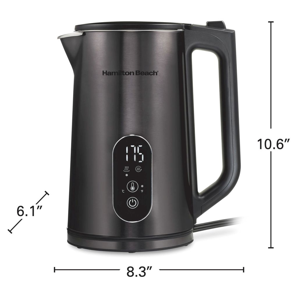 This electric kettle has a large display, digital controls and 5 temperature presets that take guesswork out of heating water to the ideal temperature. Presets include green tea, white tea, oolong tea, French press or black tea/boil.