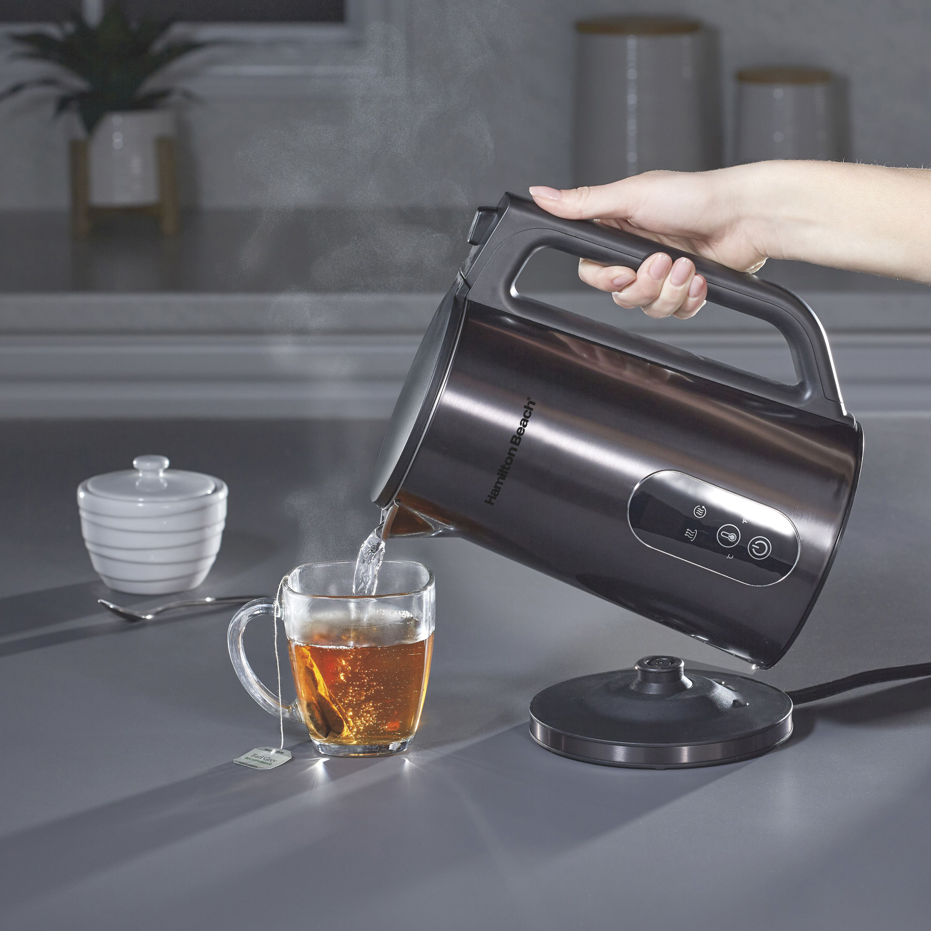 The automatic shutoff feature with boil-dry protection keeps the stainless steel kettle from scorching.