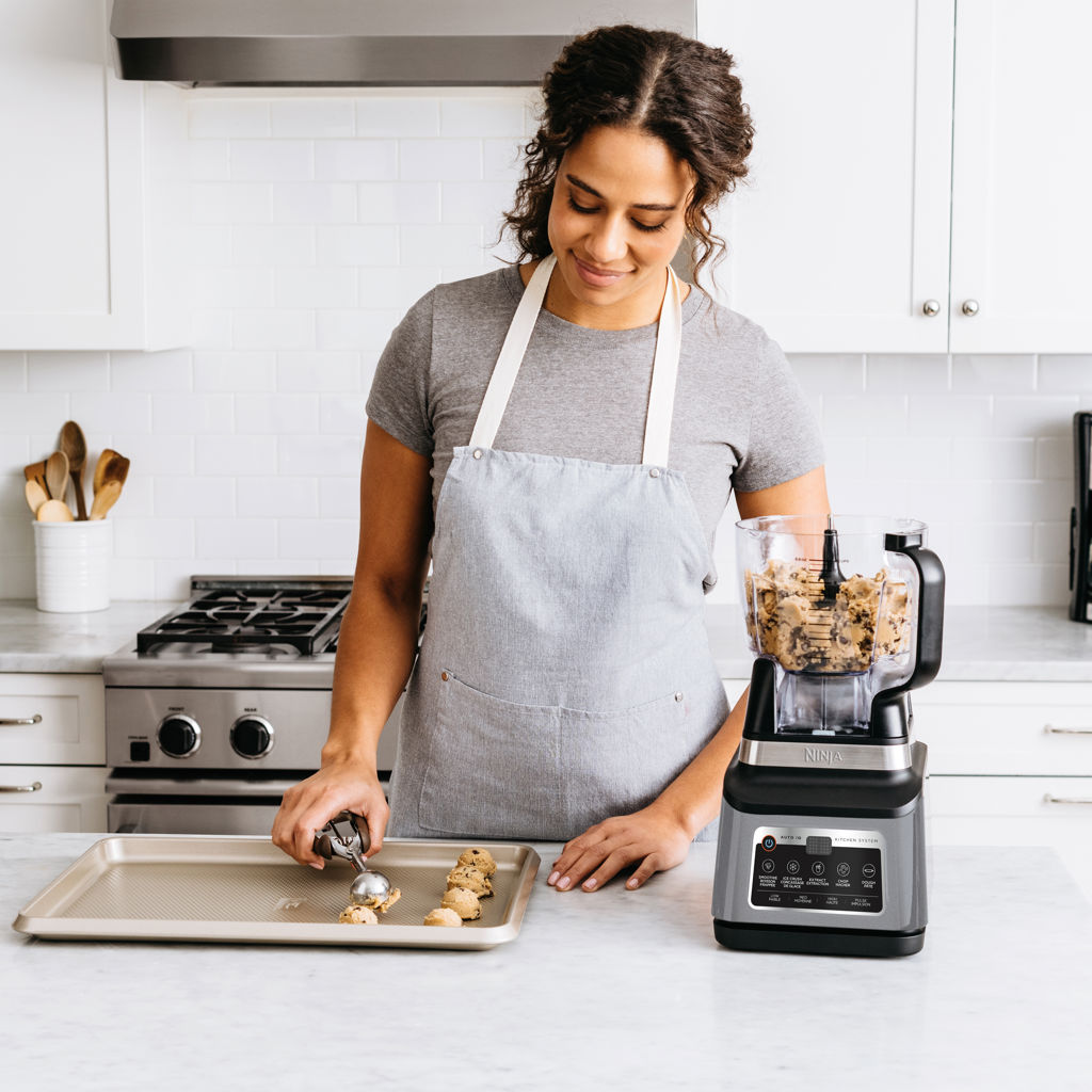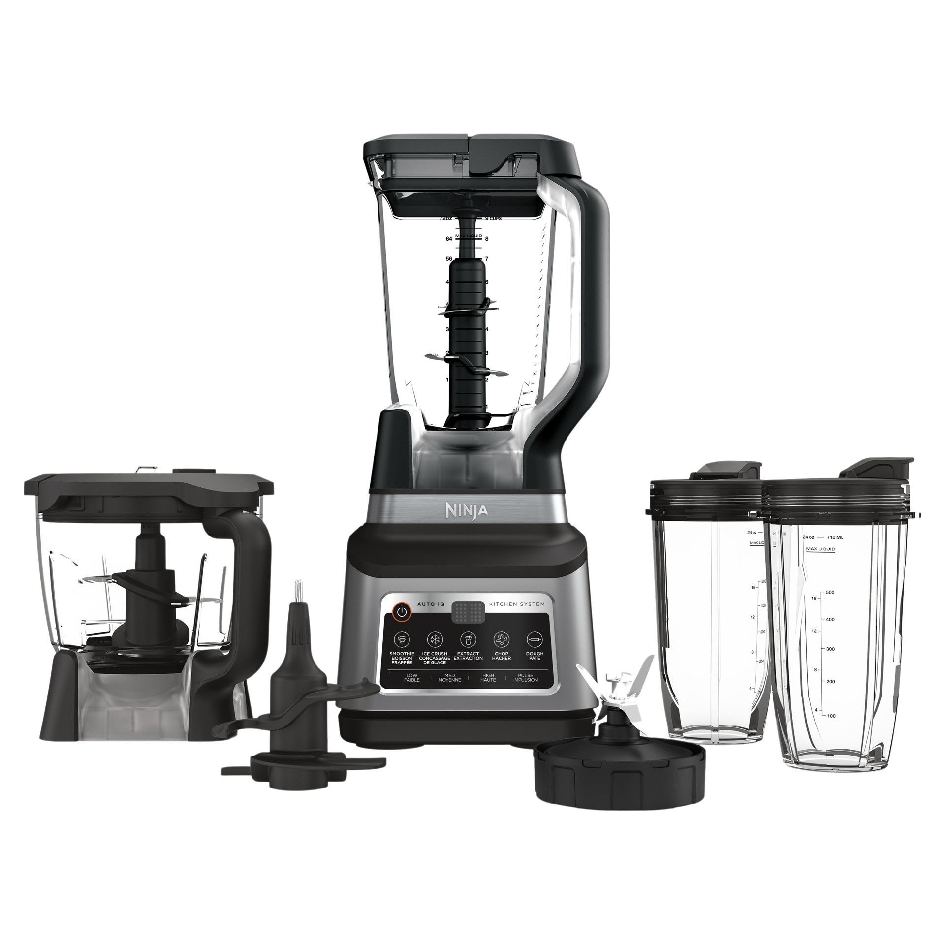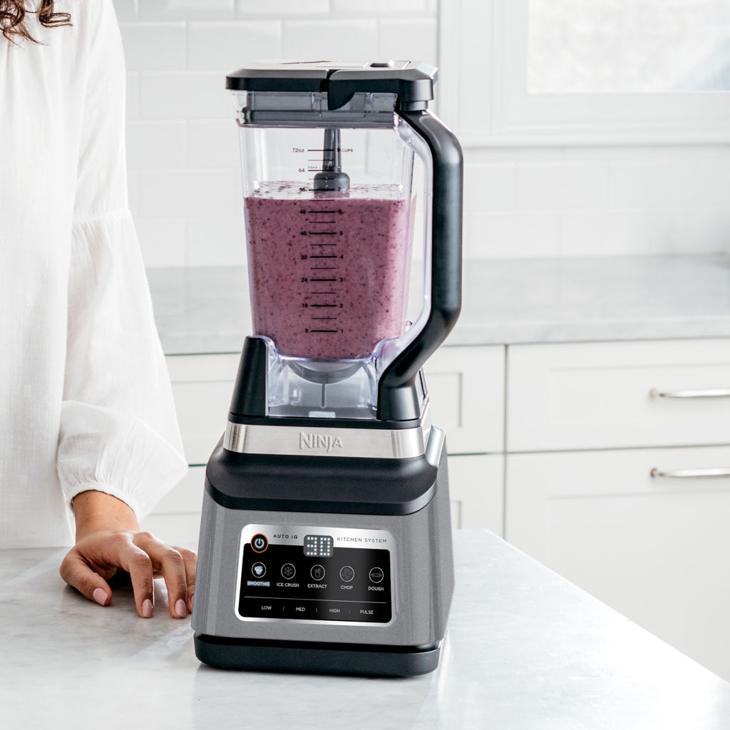 The Ninja® Professional Plus Kitchen System with Auto-iQ® features a sleek new design and more functionality than the original Ninja Professional Kitchen System.