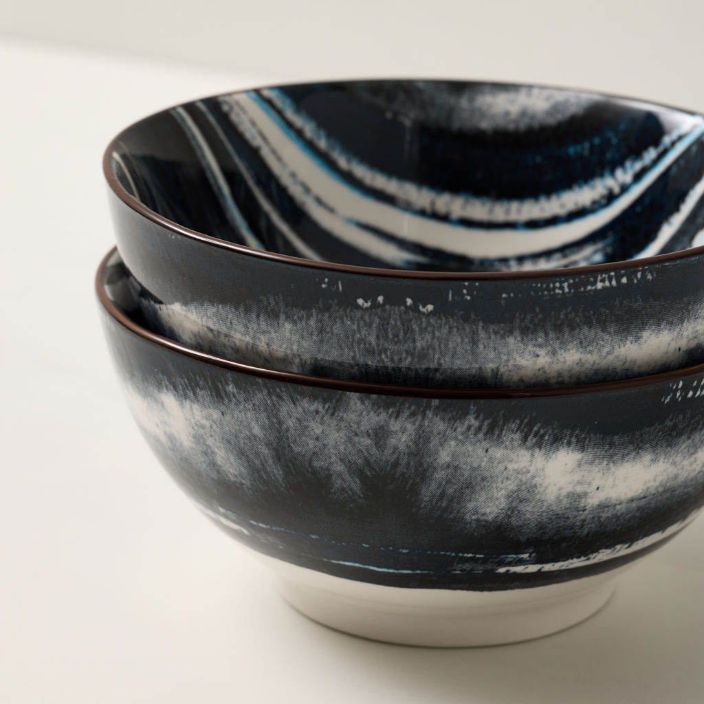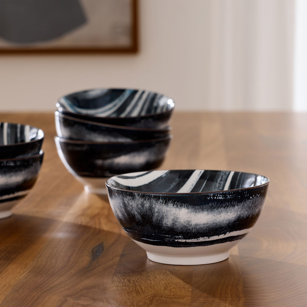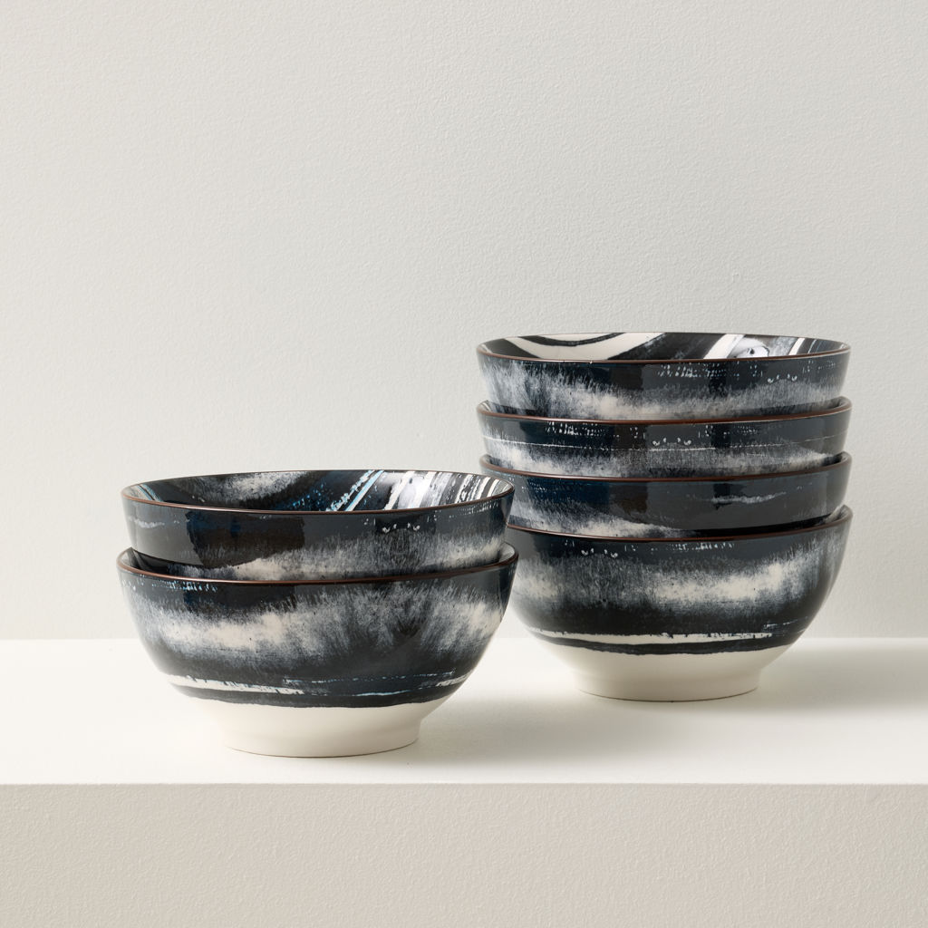 Set of 6 Kiku 15 cm striped bowls