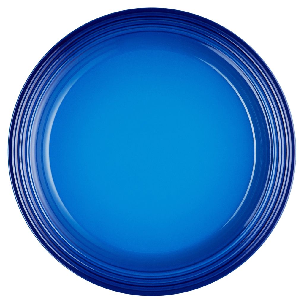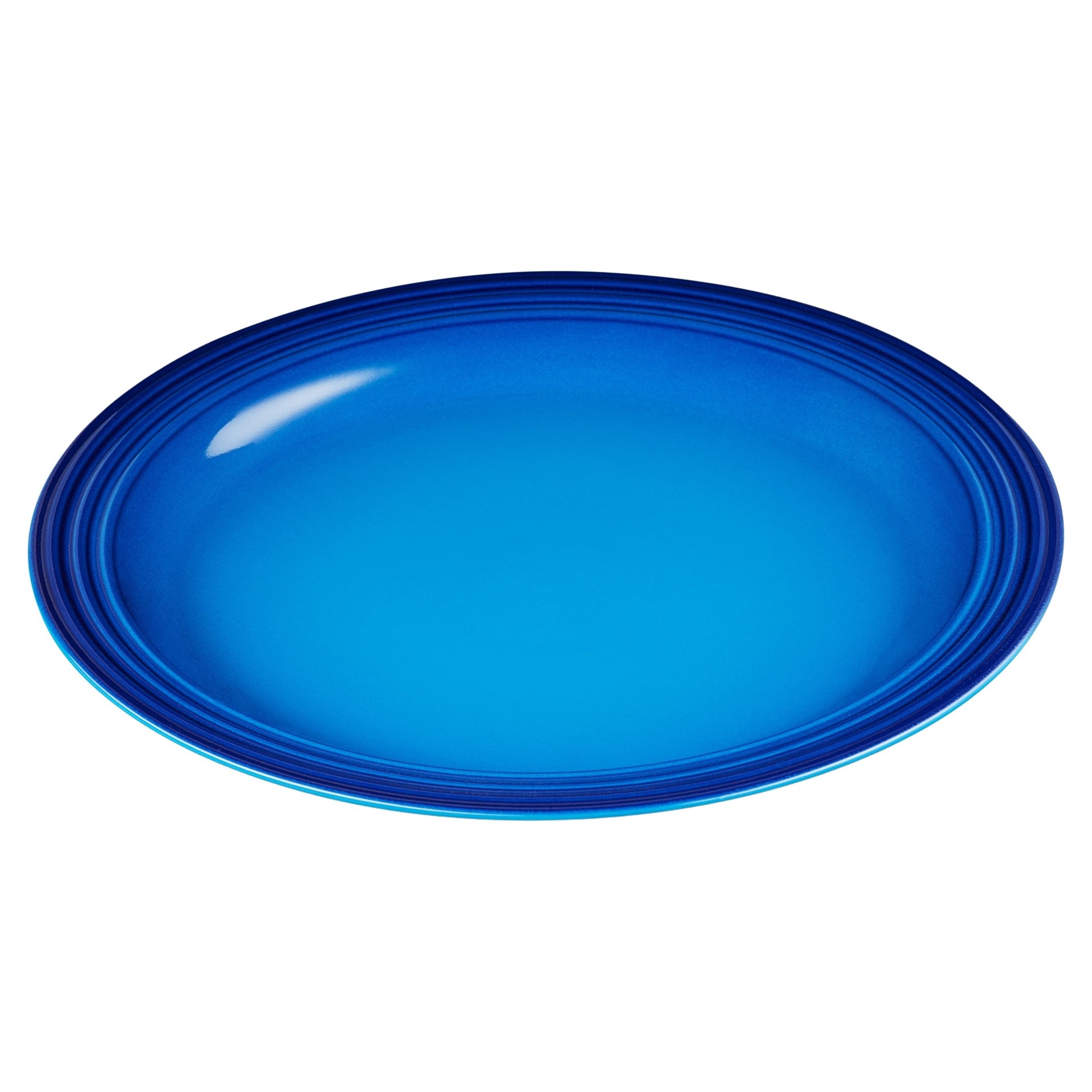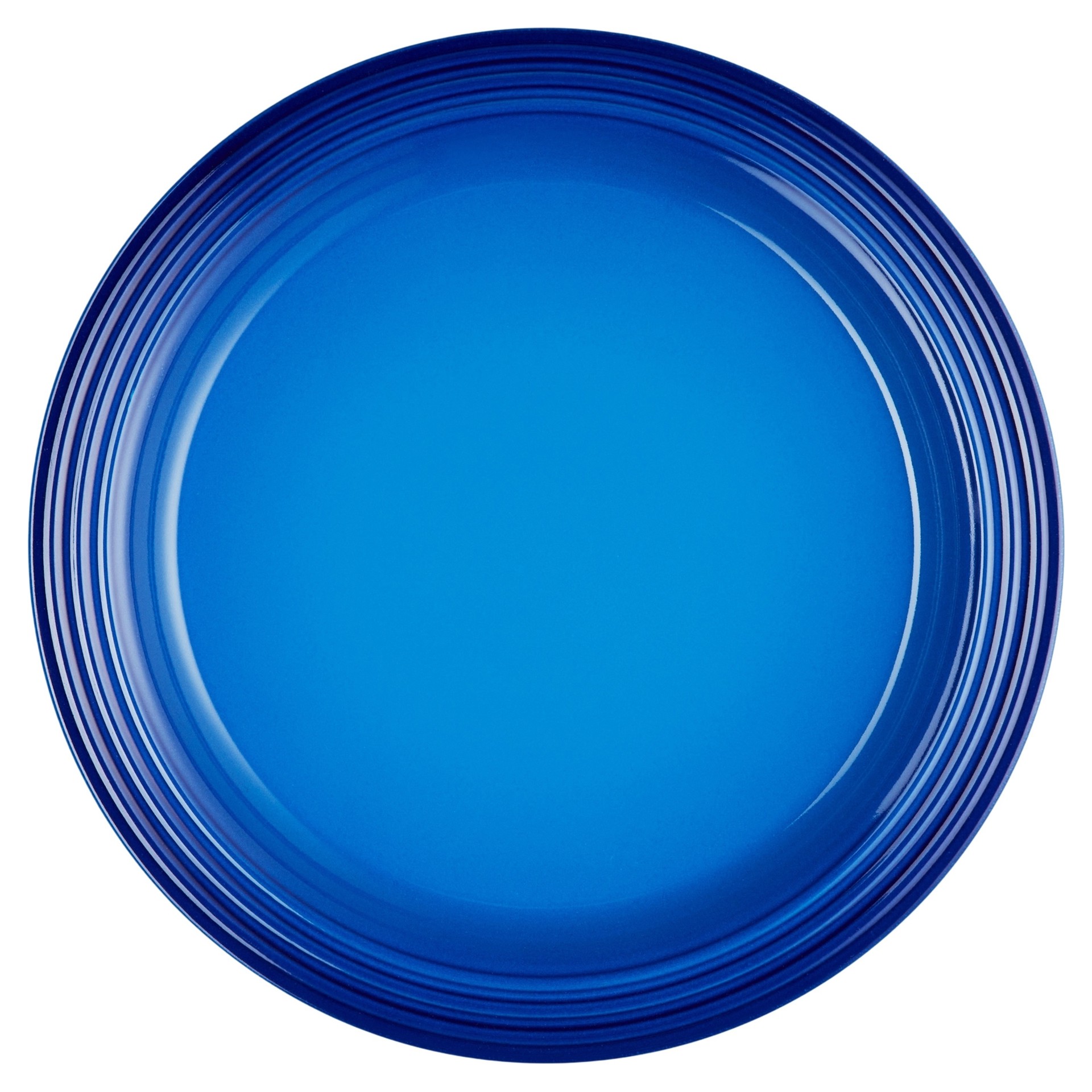 Each piece of Le Creuset dinnerware is manufactured using the same methodical process used for all stoneware items. The durable, colorful outer glaze perfectly matches the other stoneware pieces. These classic 27 cm plates feature a recessed basin for holding liquids and a sleek wing with Le Creuset's iconic three rings.